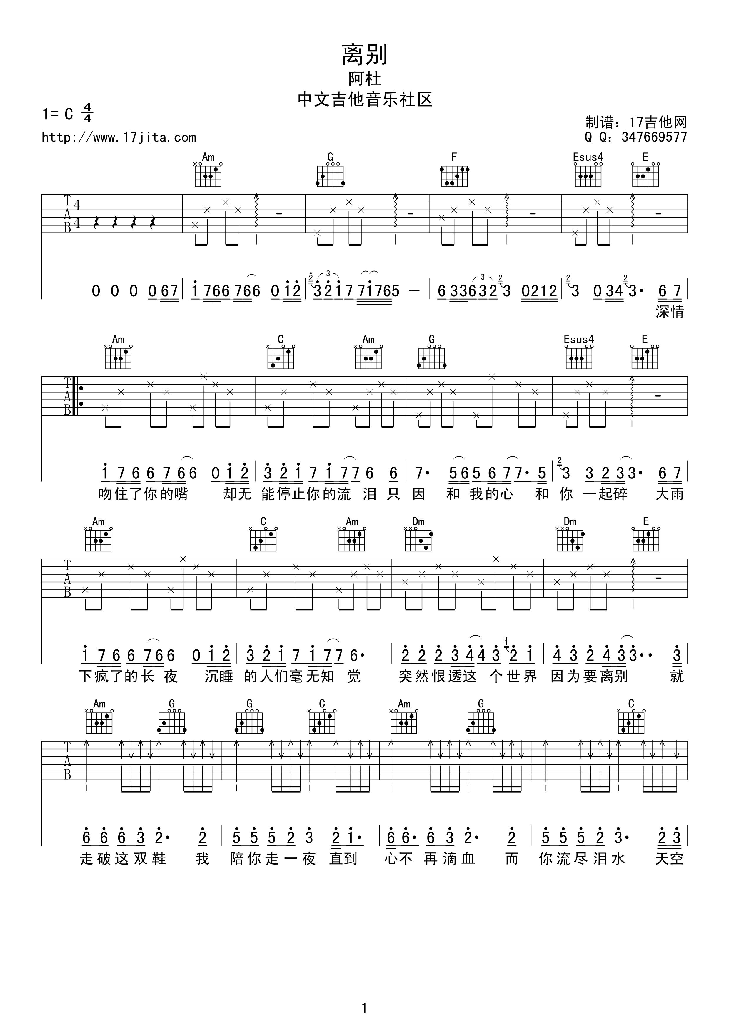 吉他阿杜《离别》吉他谱_吉他弹唱谱_17吉他编配
