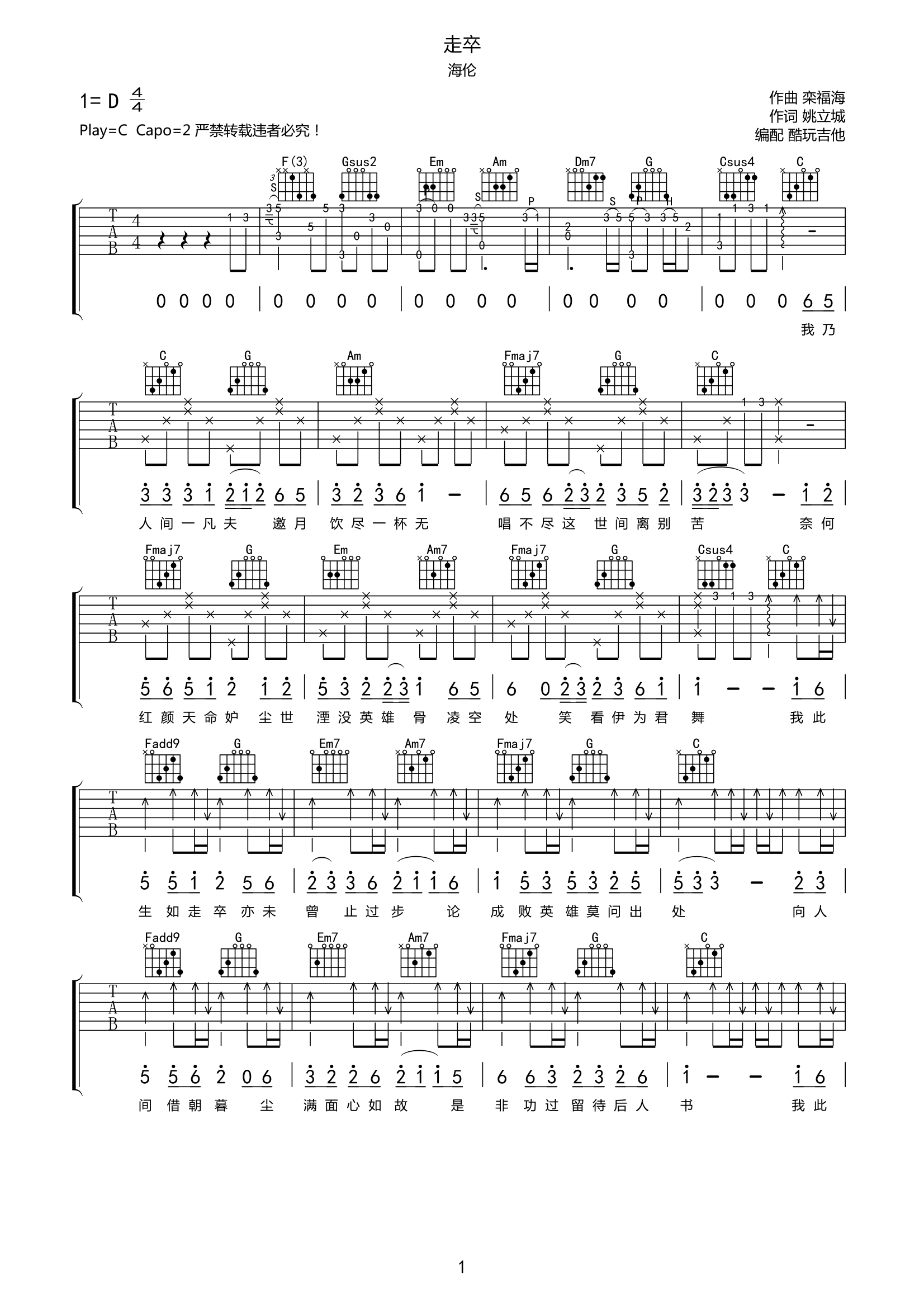 吉他海伦《走卒》吉他谱-C调弹唱谱高清原版谱