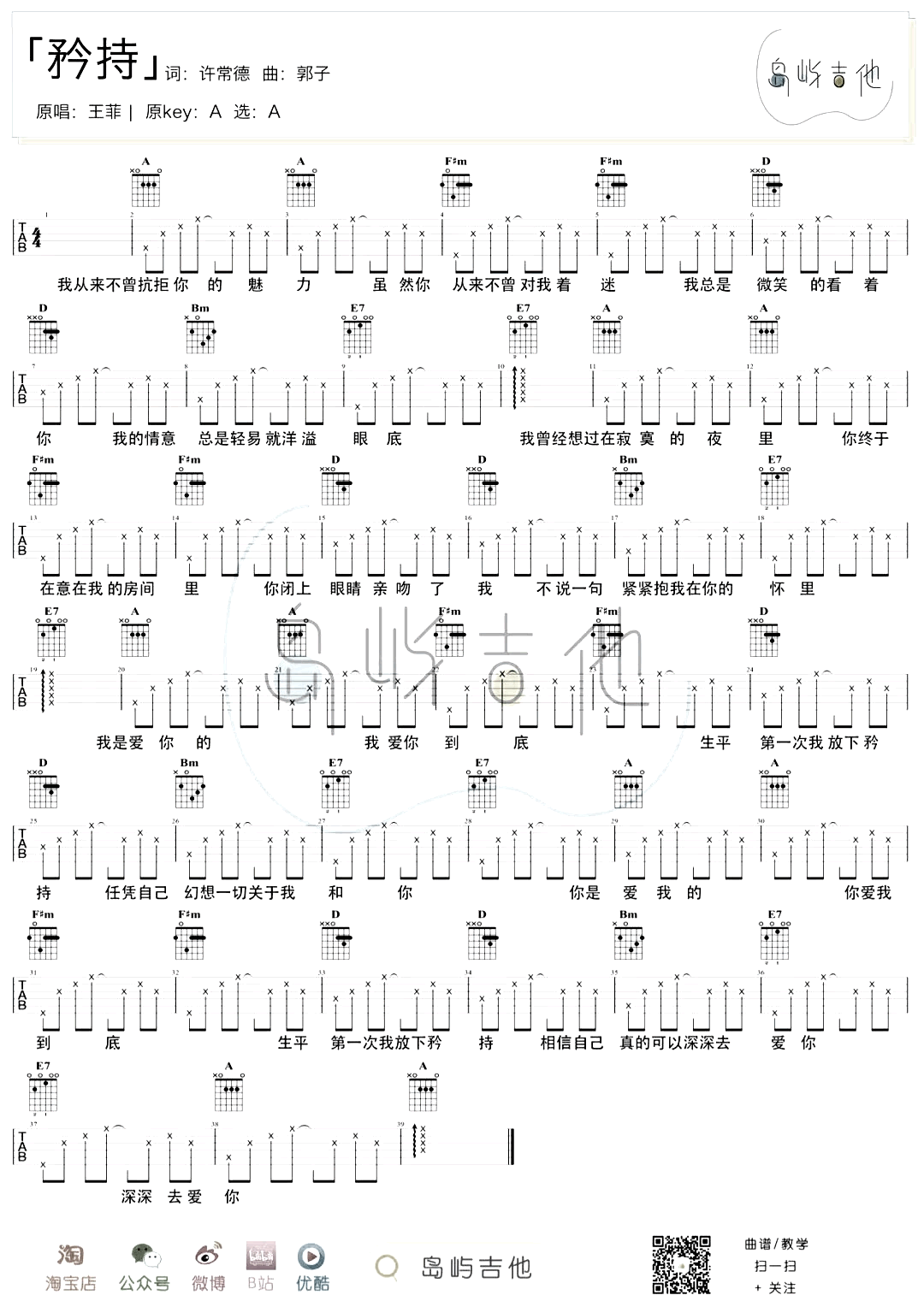 吉他矜持吉他谱_王菲_A调弹唱谱_《矜持》六线谱