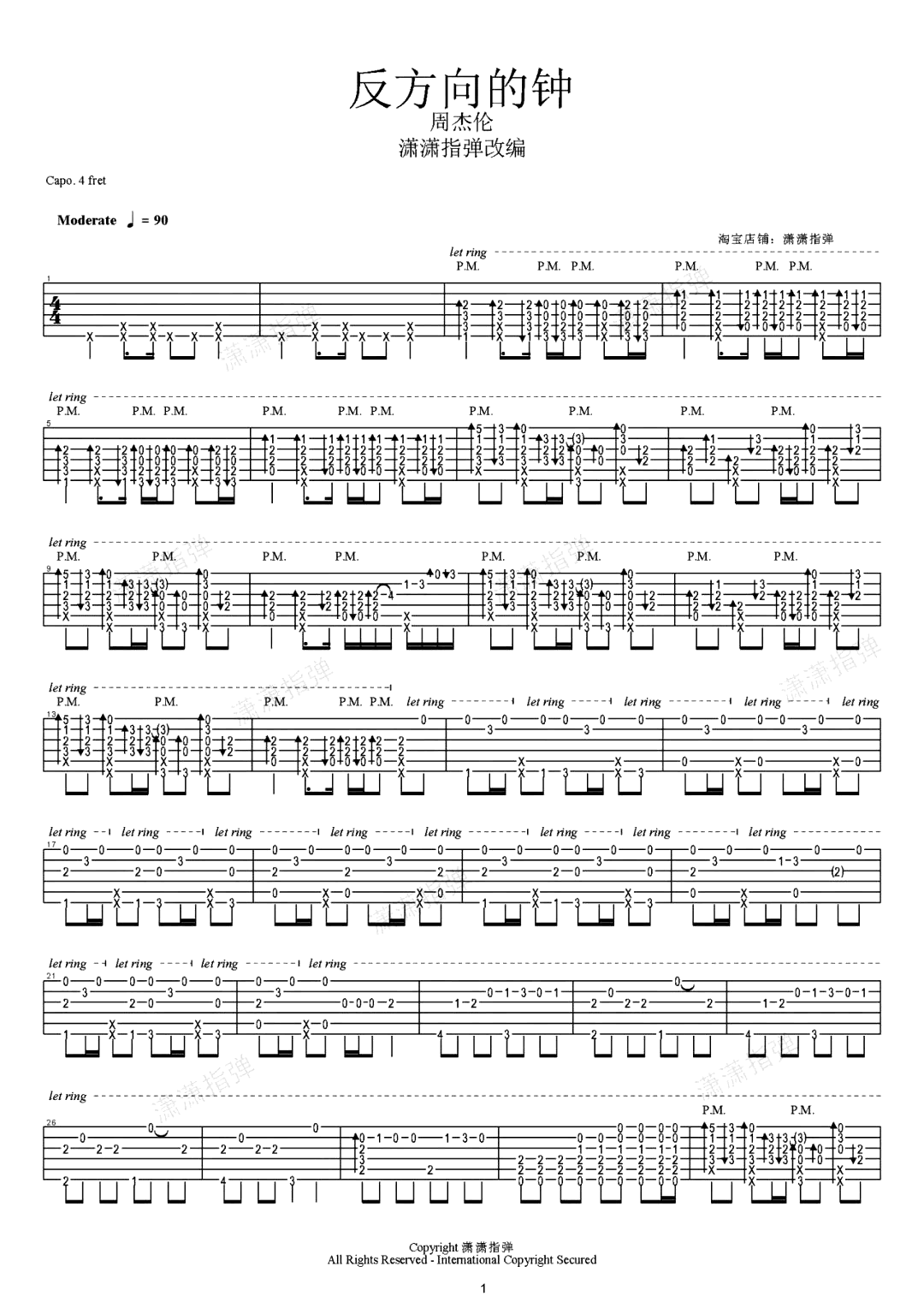 反方向的钟指弹谱_周杰伦吉他是标准调弦,变调夹夹4品,之前版本是简短指弹是夹2品...