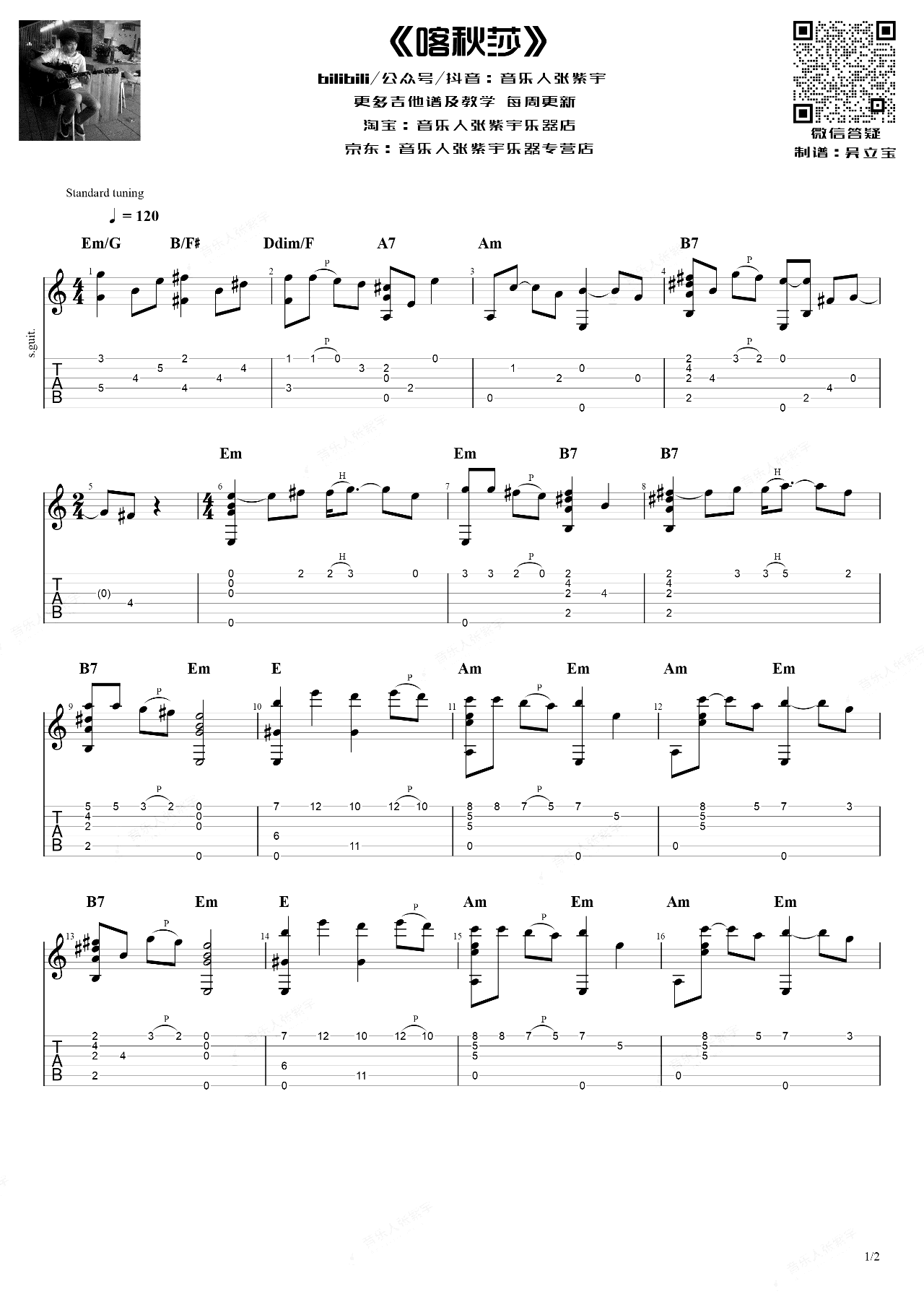 吉他喀秋莎指弹谱_吉他独奏教学