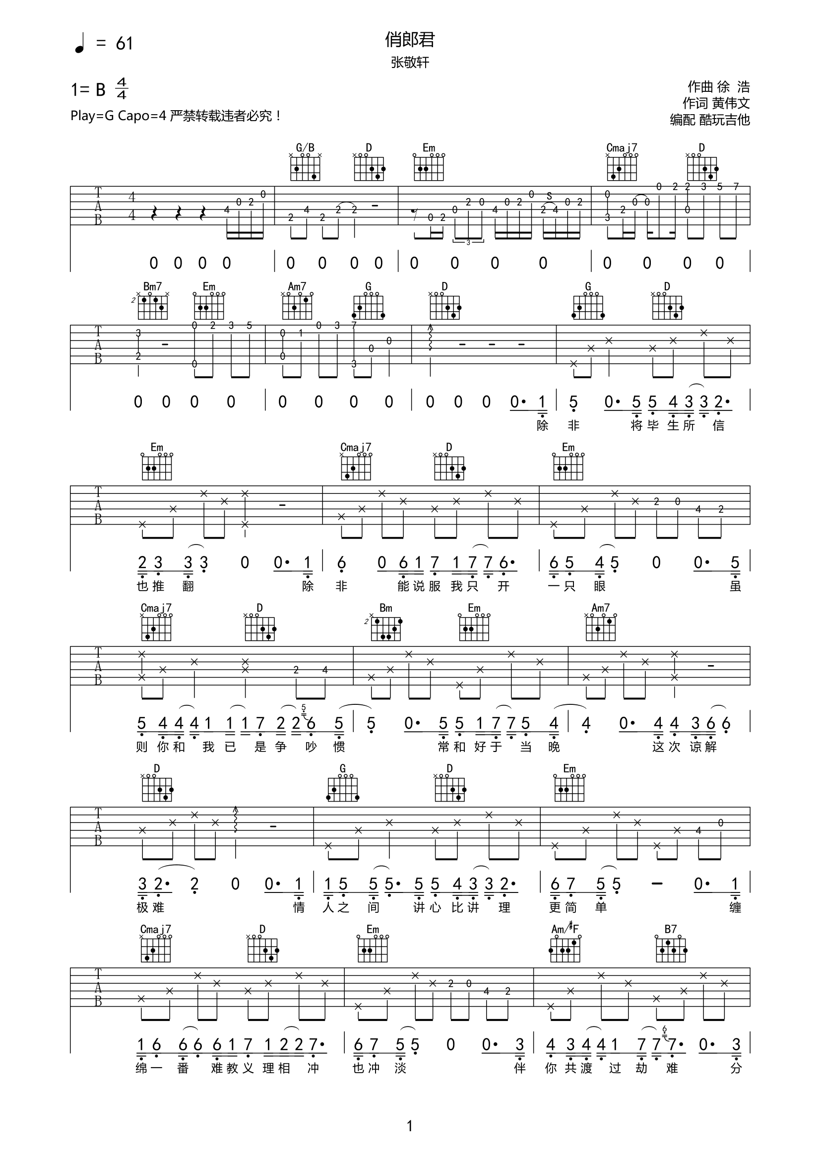 吉他张敬轩《俏郎君》吉他谱-G调弹唱谱原版编配