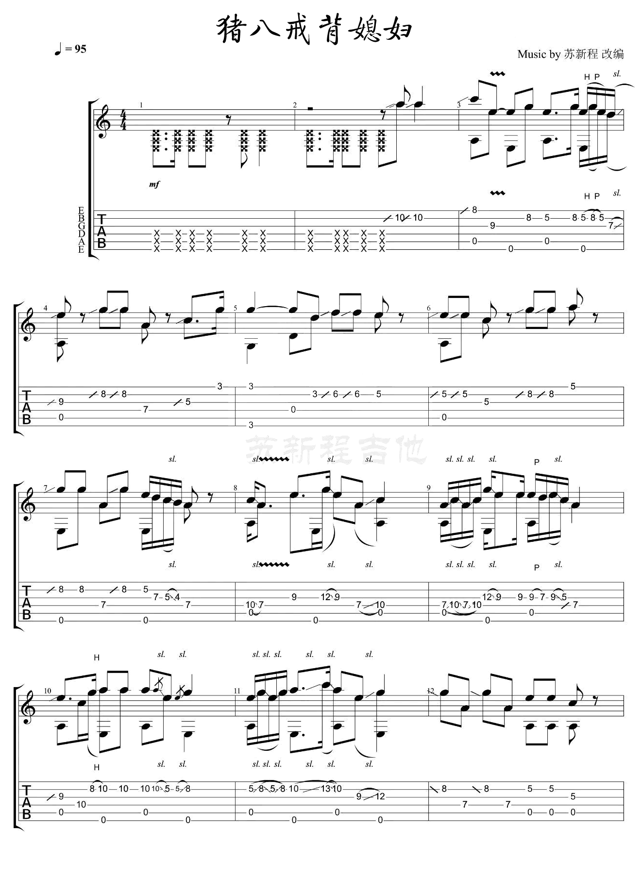 猪八戒背媳妇指弹谱_吉他独奏_指弹吉他歌曲轻松有趣,吉他演奏中使用了大量的滑音、揉弦和击勾弦技巧。...