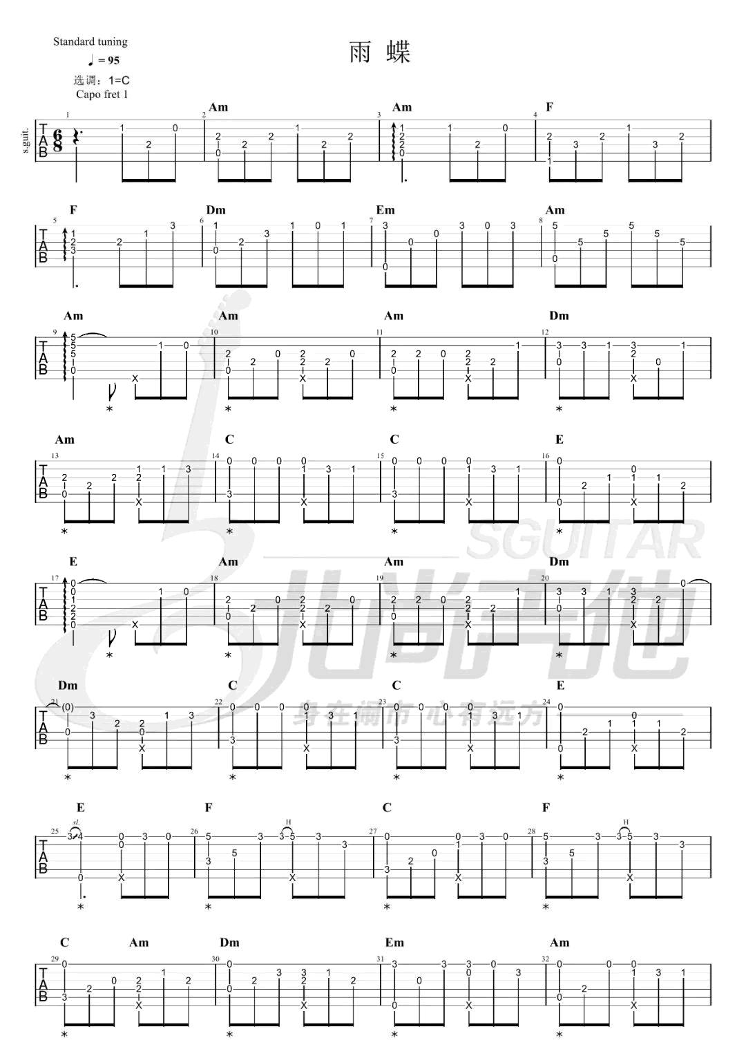 吉他雨蝶指弹谱_吉他演示视频_还珠格格片尾曲_吉他独奏谱
