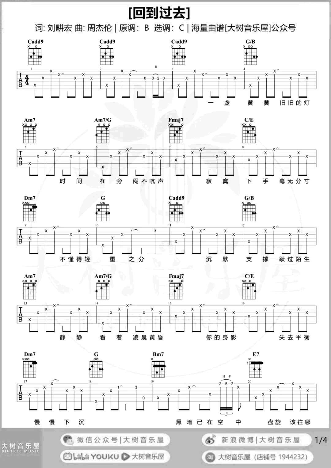 回到过去吉他谱_C调女生版_周杰伦原调B选调C,女生不用变调夹,如果男生弹唱觉得音太高可以选择变调夹夹三到五品,低八度来唱。...