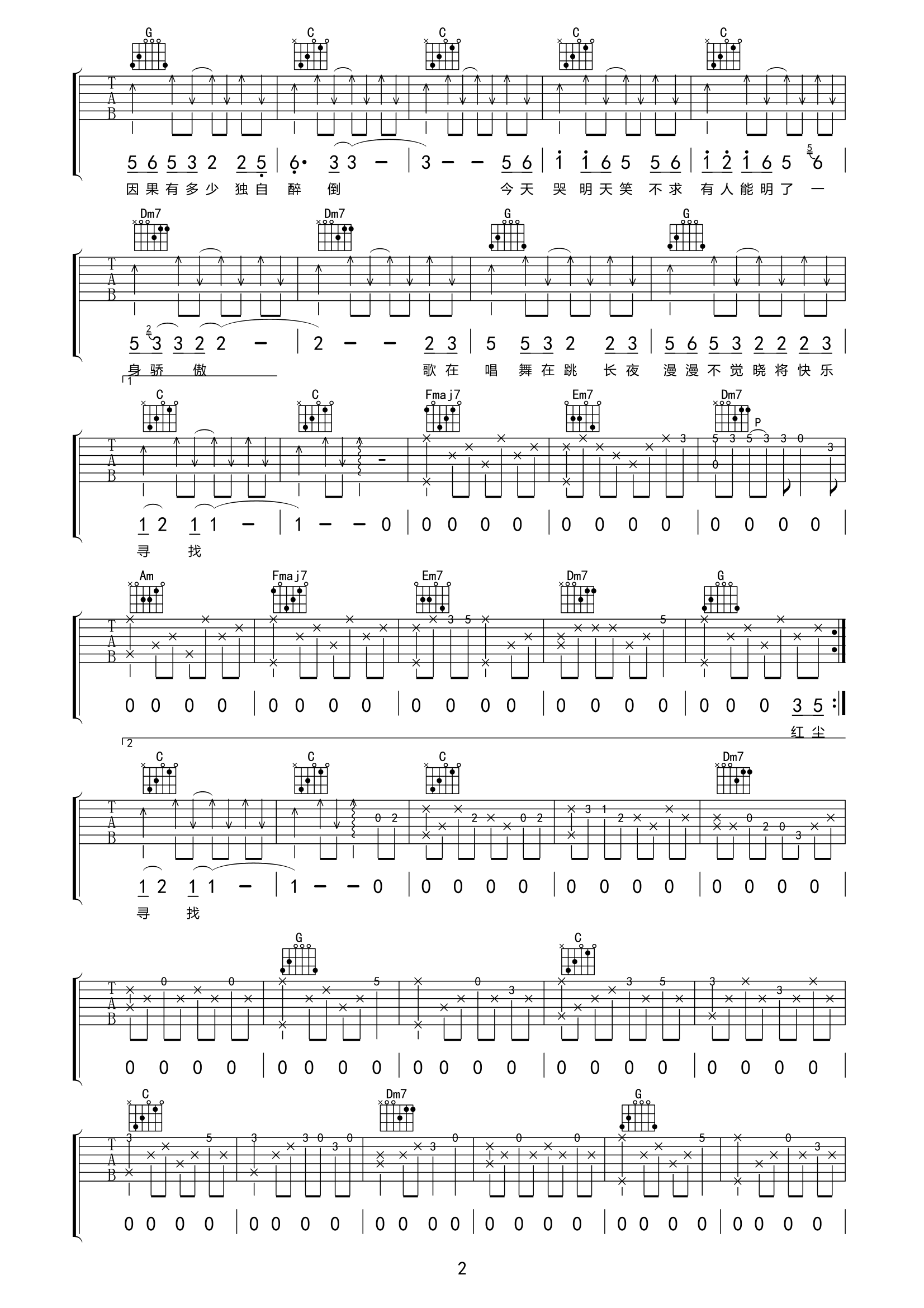 吉他陈淑桦《笑红尘》吉他谱-C调弹唱谱原版高清完整版