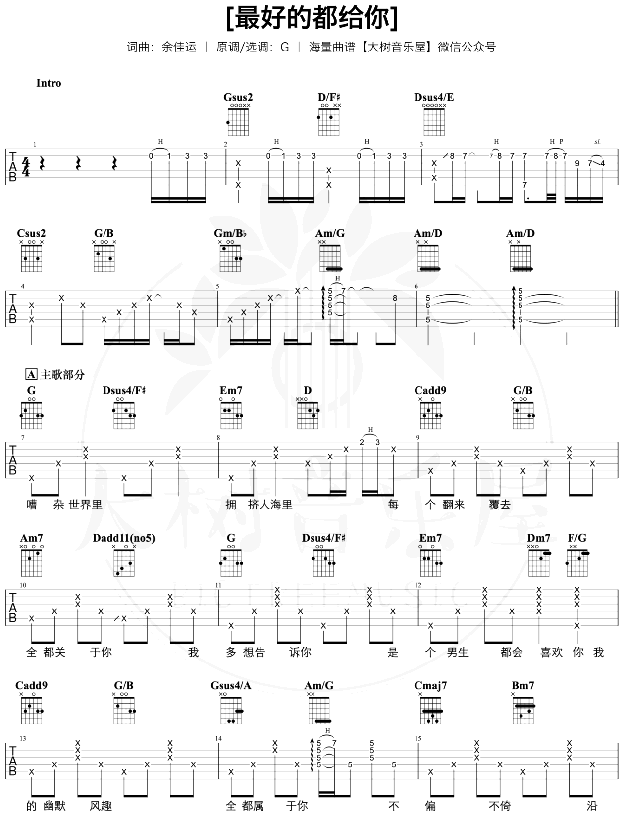 吉他最好的都给你吉他谱_余佳运_G调弹唱谱