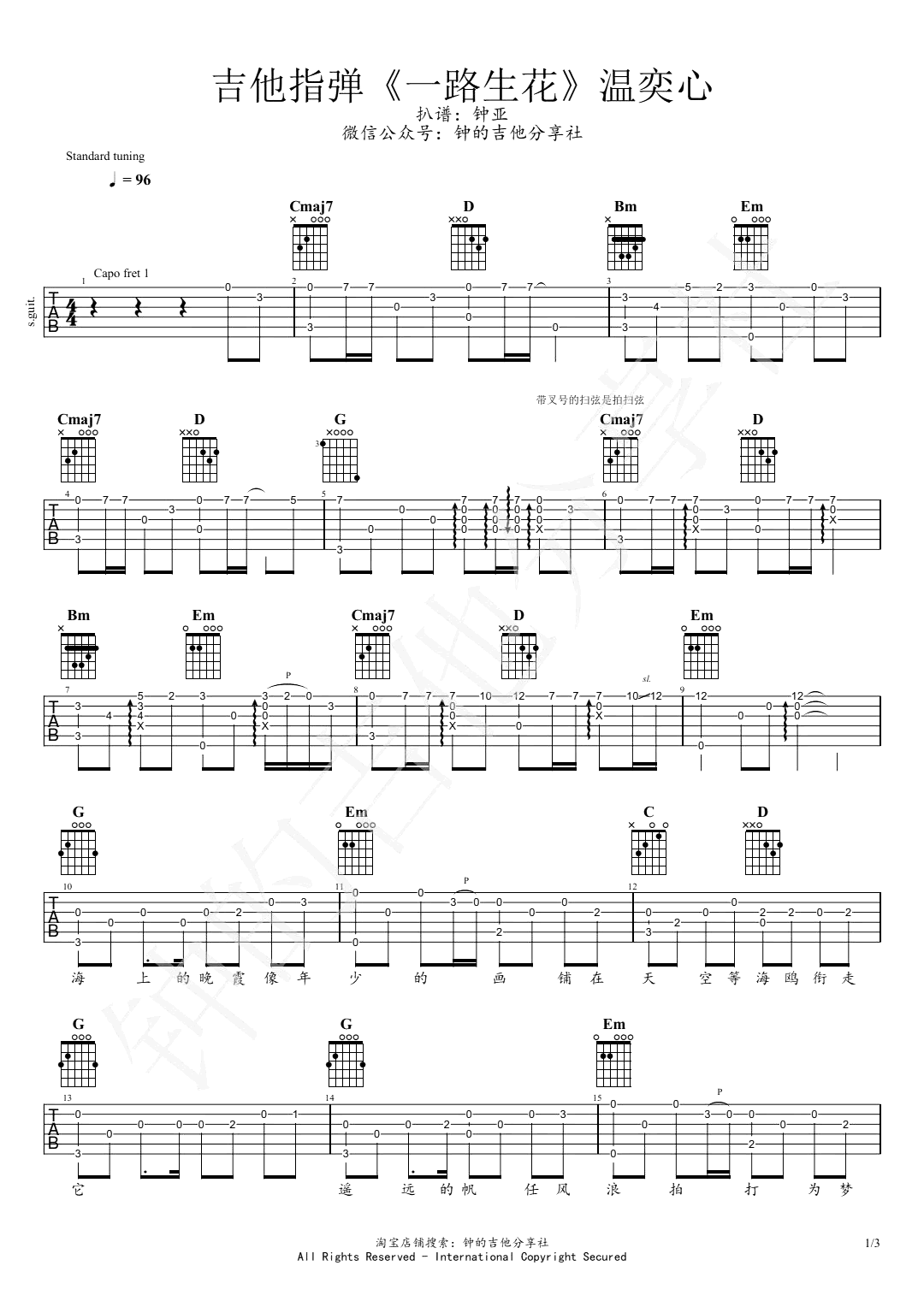吉他一路生花指弹谱_温奕心_带原版前奏