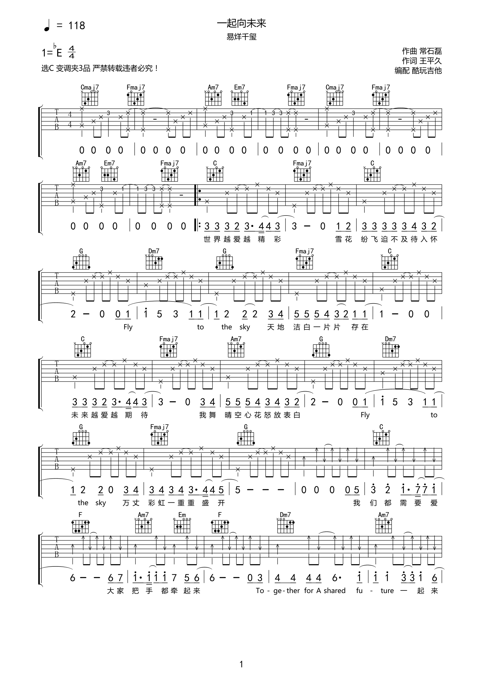 易烊千玺《一起向未来》吉他谱-C调弹唱谱高清完整原版易烊千玺献唱北京2022年冬奥会和冬残奥会主题口号推广歌曲《一起向未来》,目前音源已经上线了,千玺的声音温柔又治愈,正能量满满...