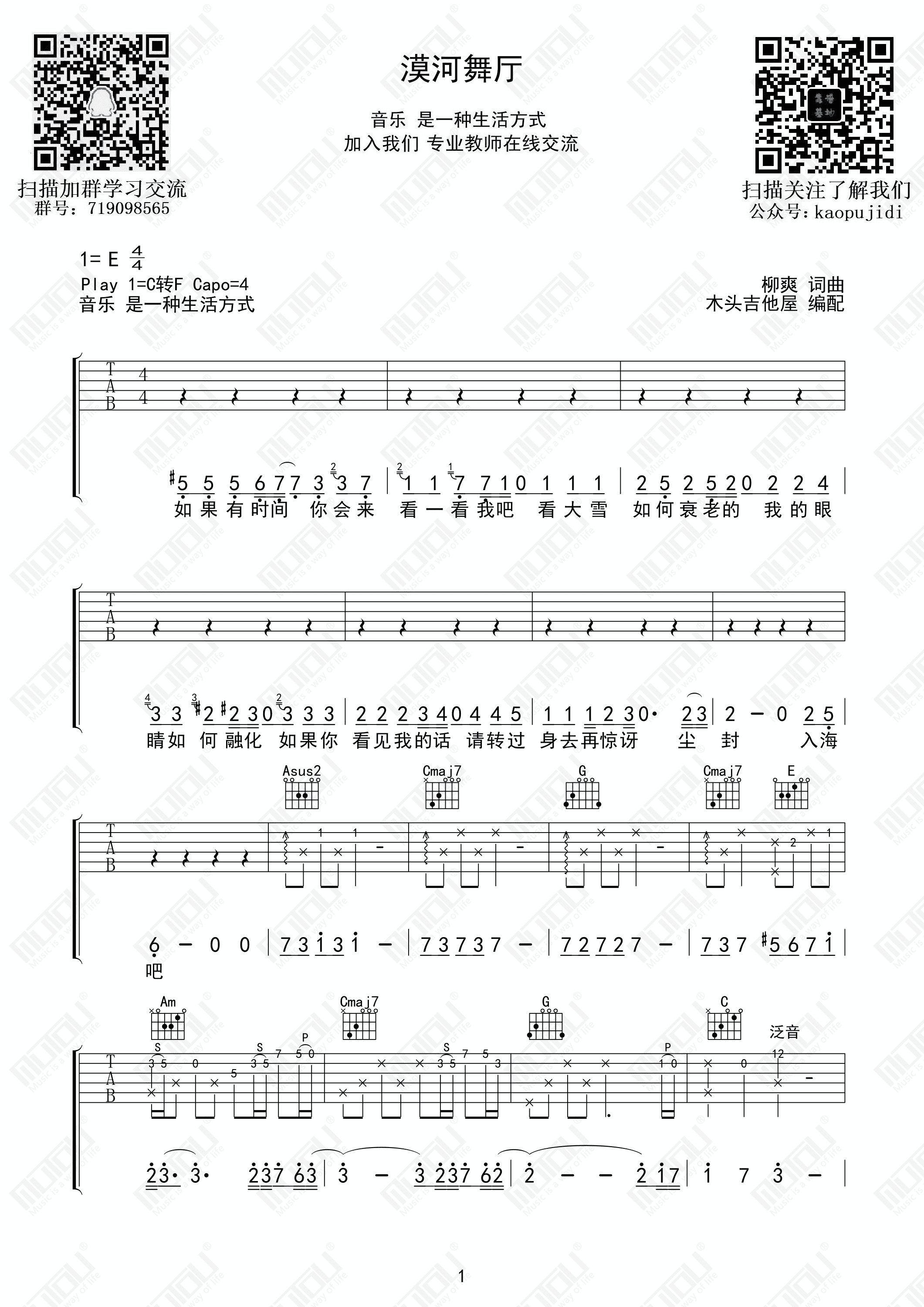 柳爽-漠河舞厅吉他谱(超难编配)[弹唱]...