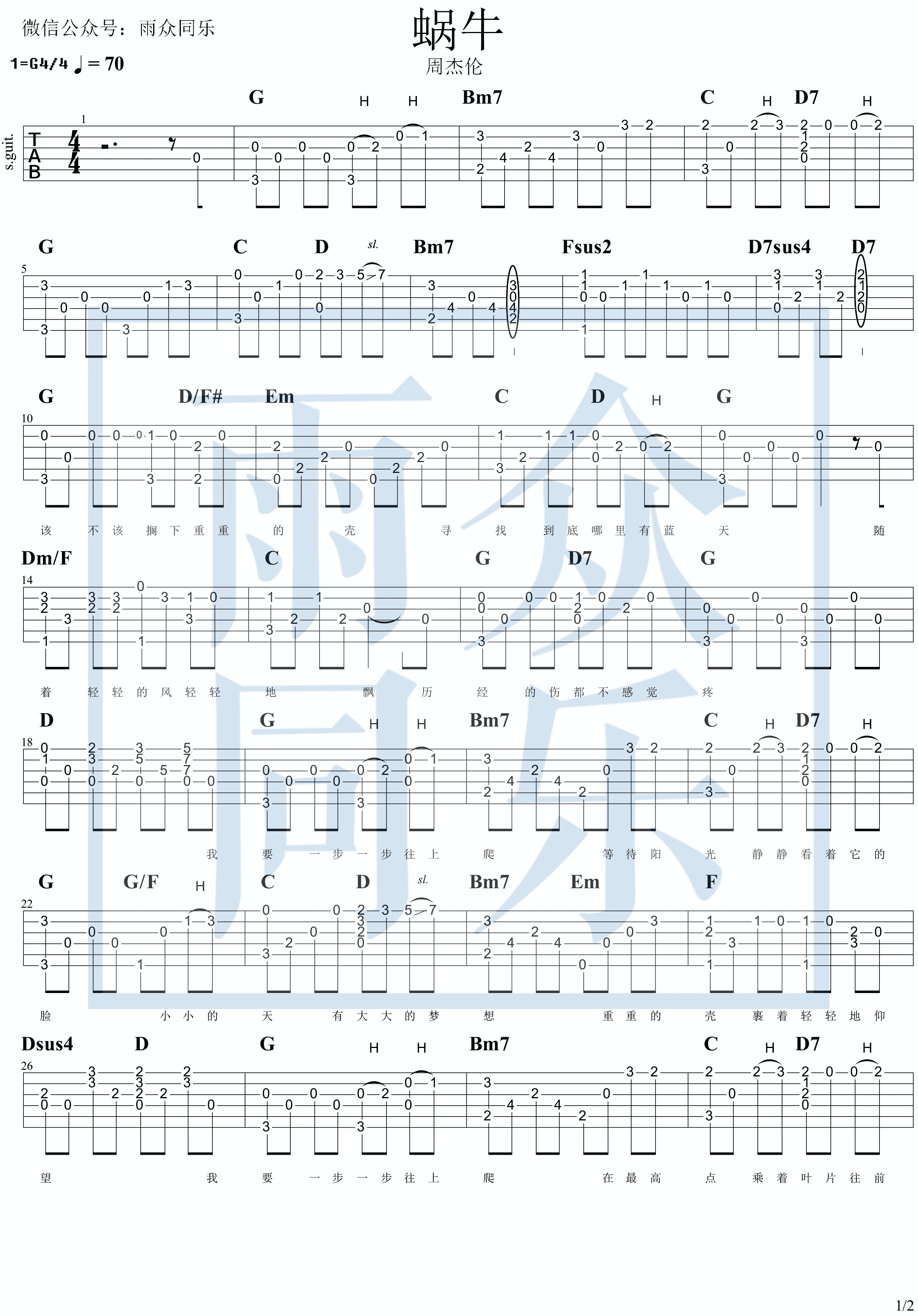周杰伦-蜗牛(吉他独奏)吉他谱...