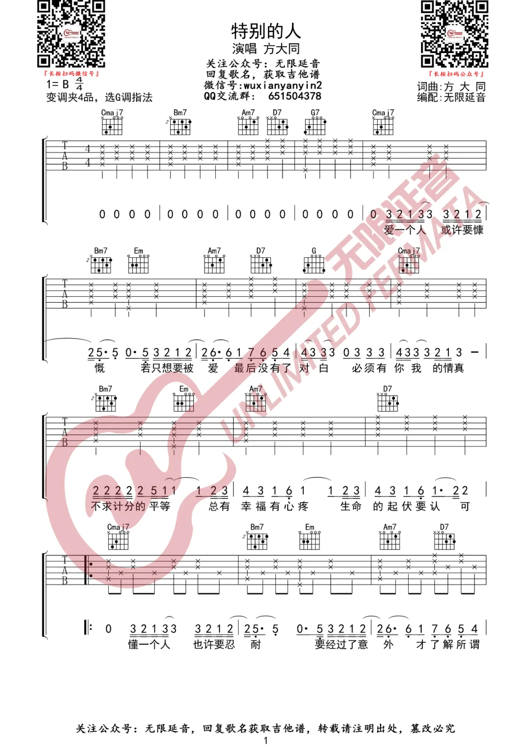 吉他特别的人吉他谱_方大同_《特别的人》G调弹唱六线谱