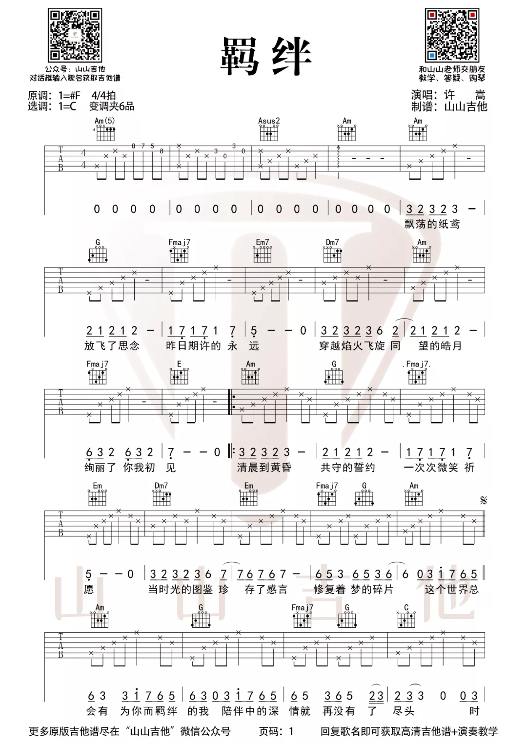 羁绊吉他谱_许嵩_《羁绊》C调原版弹唱六线谱...