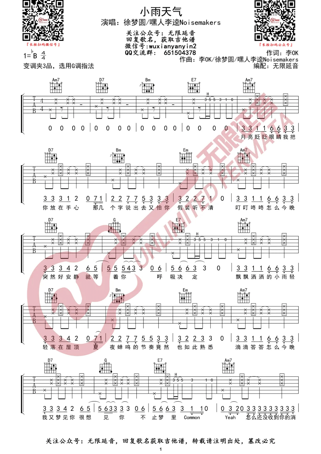 《小雨天气》吉他谱_徐梦圆/嘿人李逵Noisemaker...
