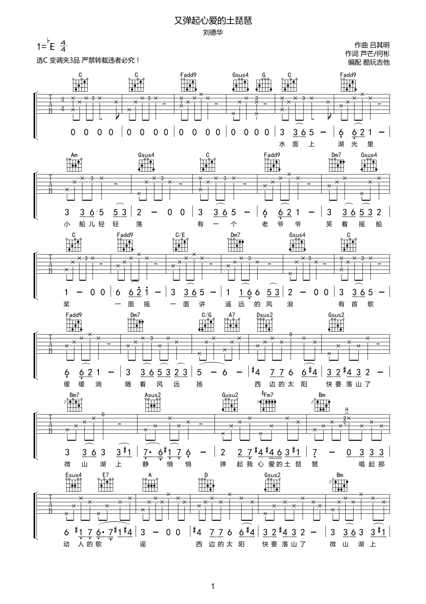 刘德华《又弹起心爱的土琵琶》吉他谱-C调原版编配...
