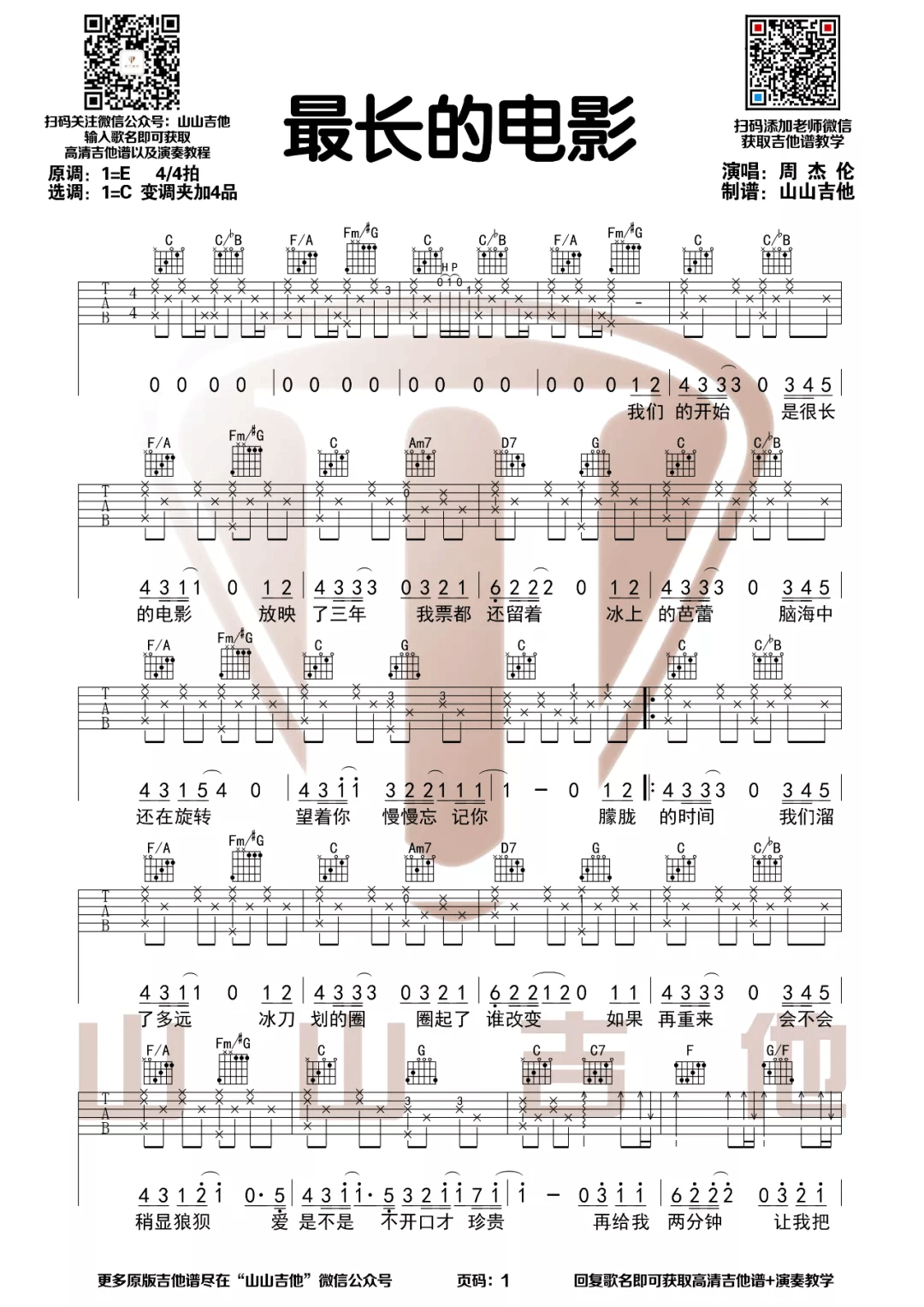 《最长的电影》吉他谱_周杰伦_C调弹唱六线谱_高清图片谱分享...