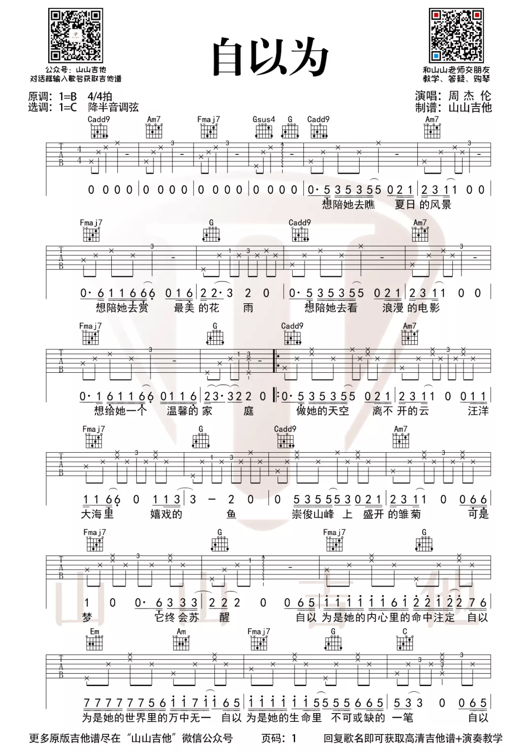 吉他《自以为》吉他谱_刘大壮_C调原版弹唱六线谱_高清图片谱分享