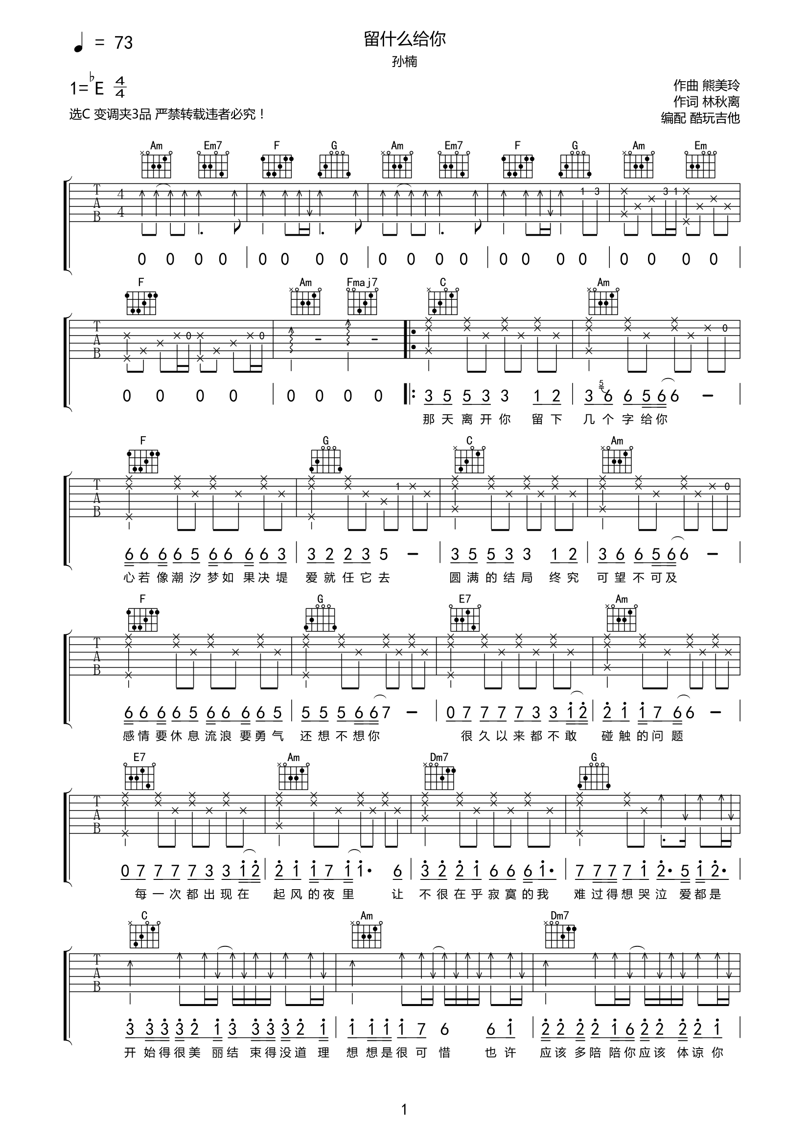 孙楠《留什么给你》吉他谱-C调弹唱谱高清六线谱...