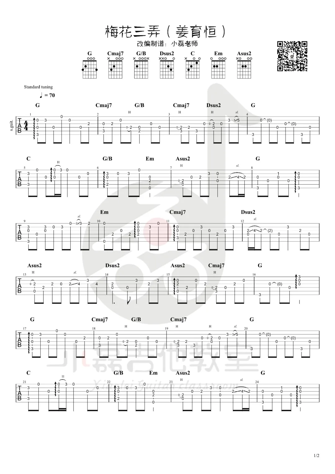 《梅花三弄》指弹吉他谱...