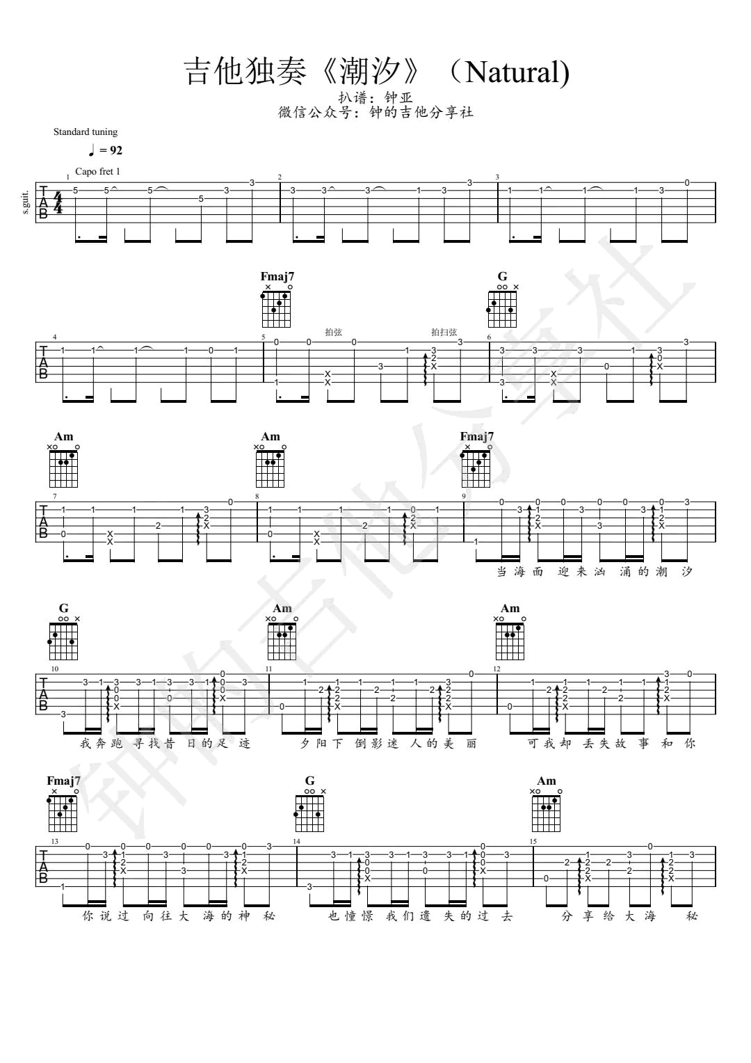 《潮汐》指弹吉他谱...