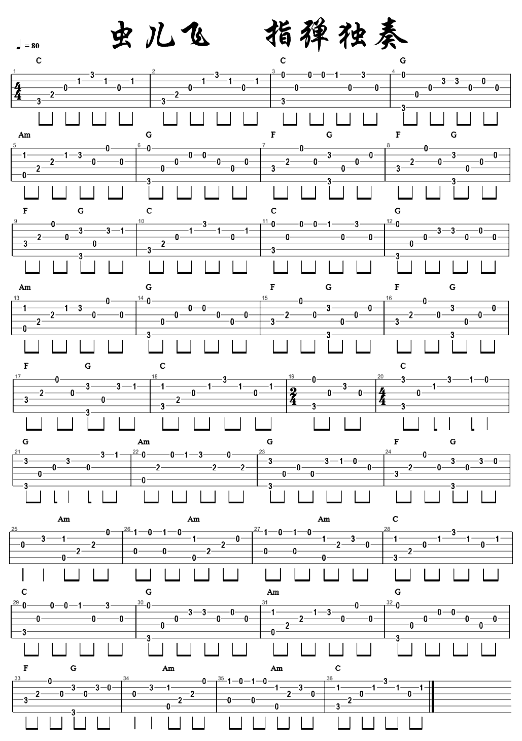 吉他《虫儿飞》吉他谱-C调指弹谱