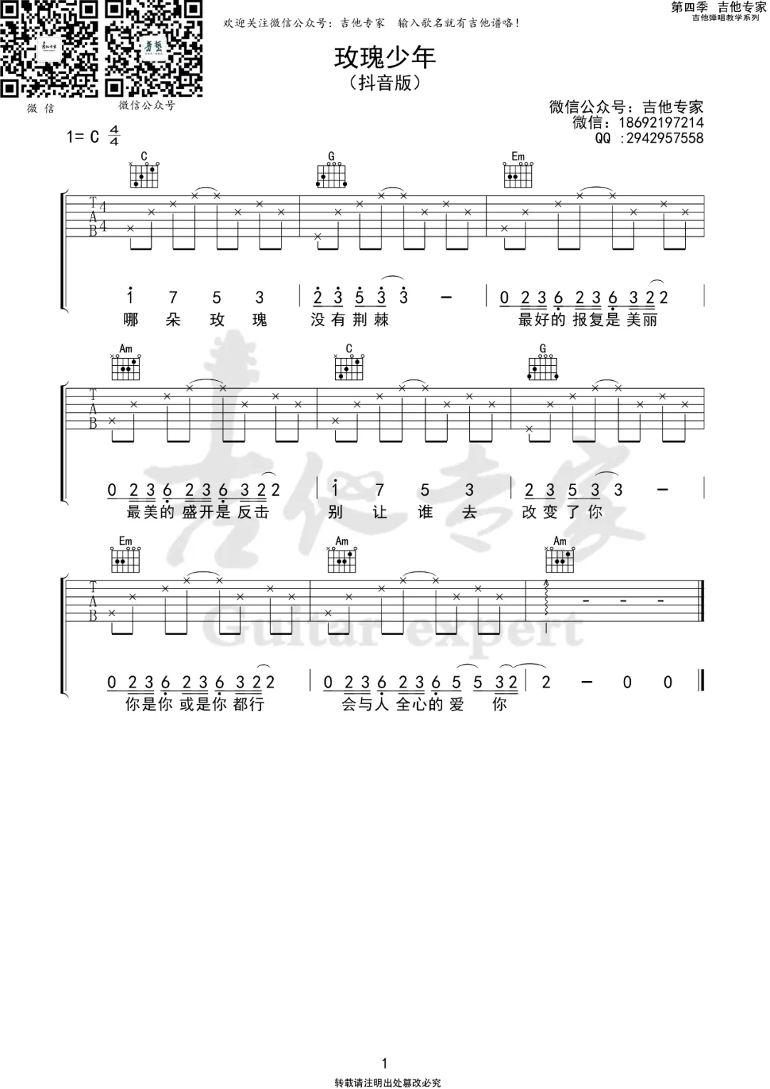 吉他tank《专属天使》吉他谱-C调弹唱谱
