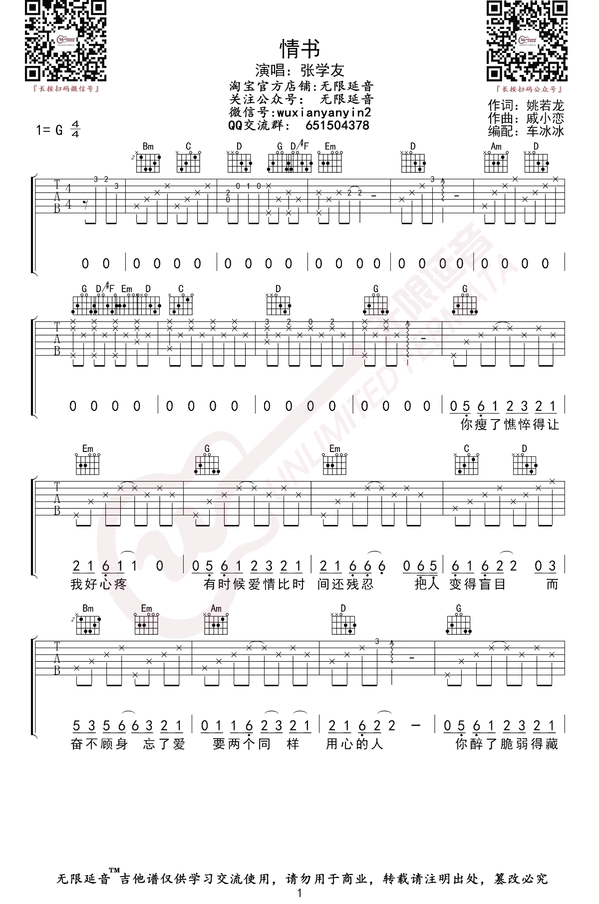 吉他张学友《情书》吉他谱-G调弹唱谱
