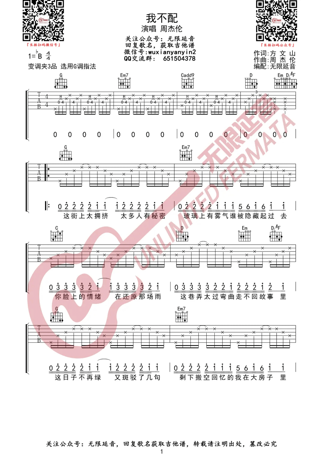周杰伦《我不配》吉他谱G调原版弹唱六线谱...