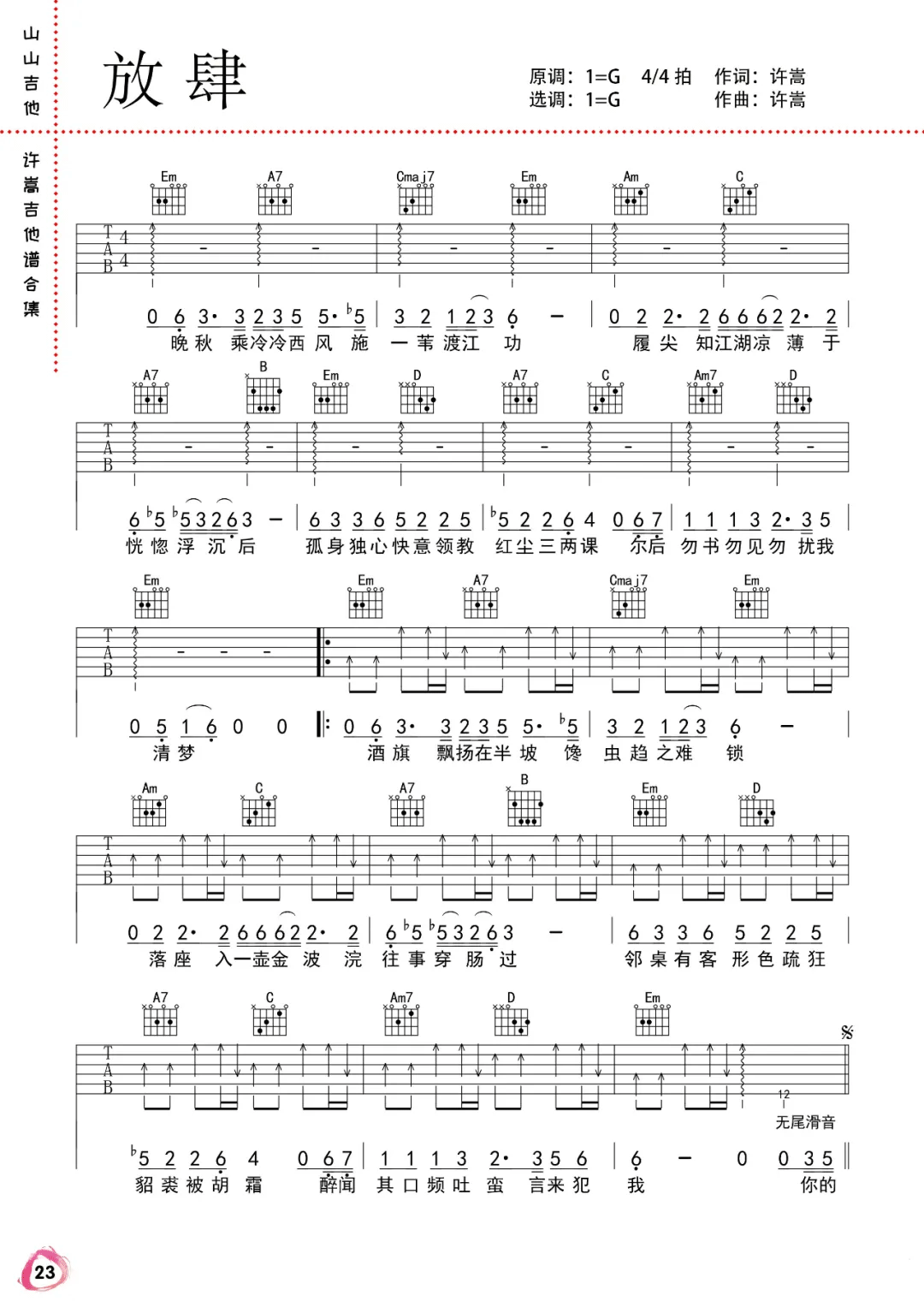 吉他许嵩《放肆》吉他谱 G调弹唱谱