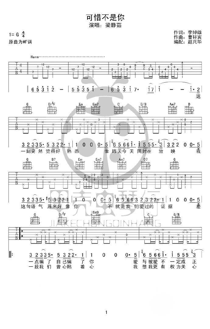吉他梁静茹《可惜不是你》G调图片弹唱吉他谱