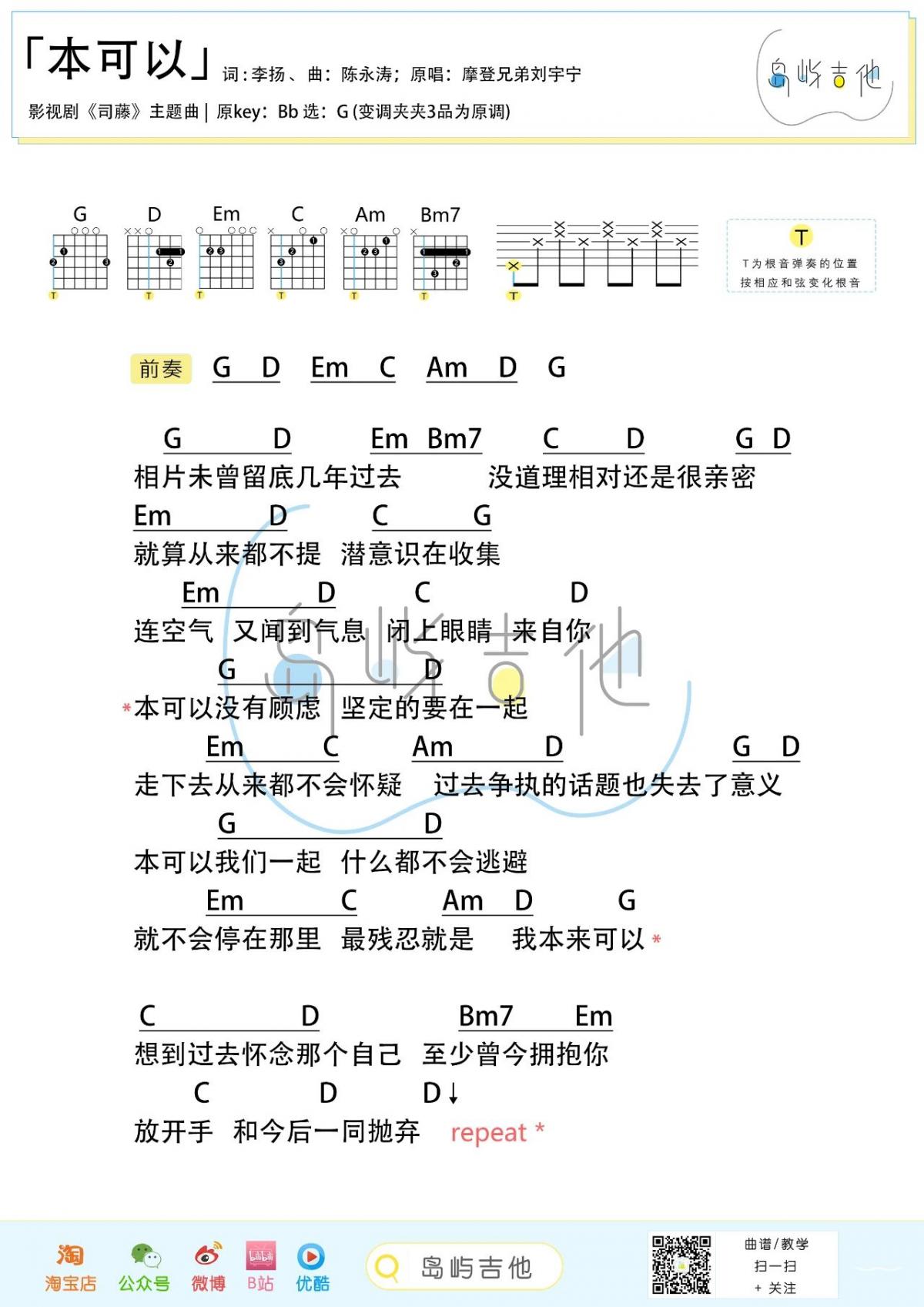 吉他本可以吉他谱_司藤主题曲吉他谱_G调吉他弹唱谱