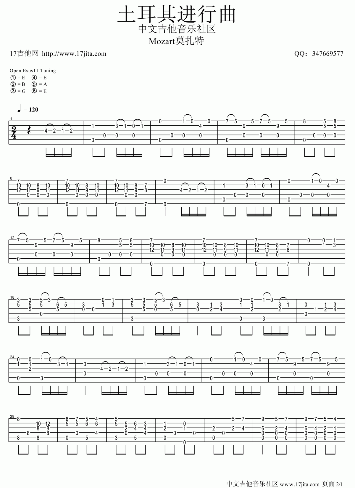 吉他土耳其进行曲吉他指弹谱_莫扎特土耳其进行曲独奏谱