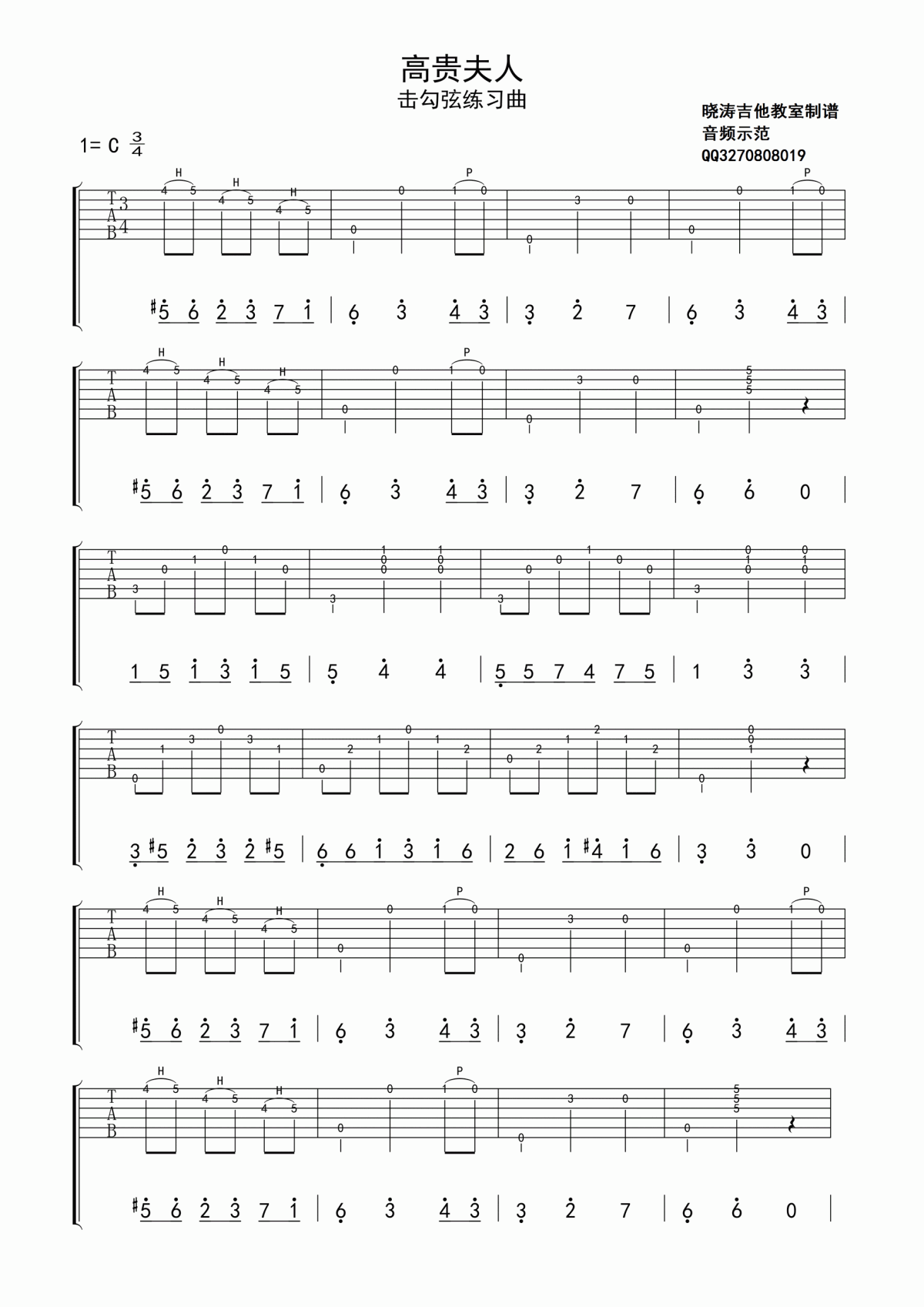 《高贵夫人指弹谱【练习曲】》吉他谱,采用C调指法编配,共有1张高清图谱,免翻页排版设计。...