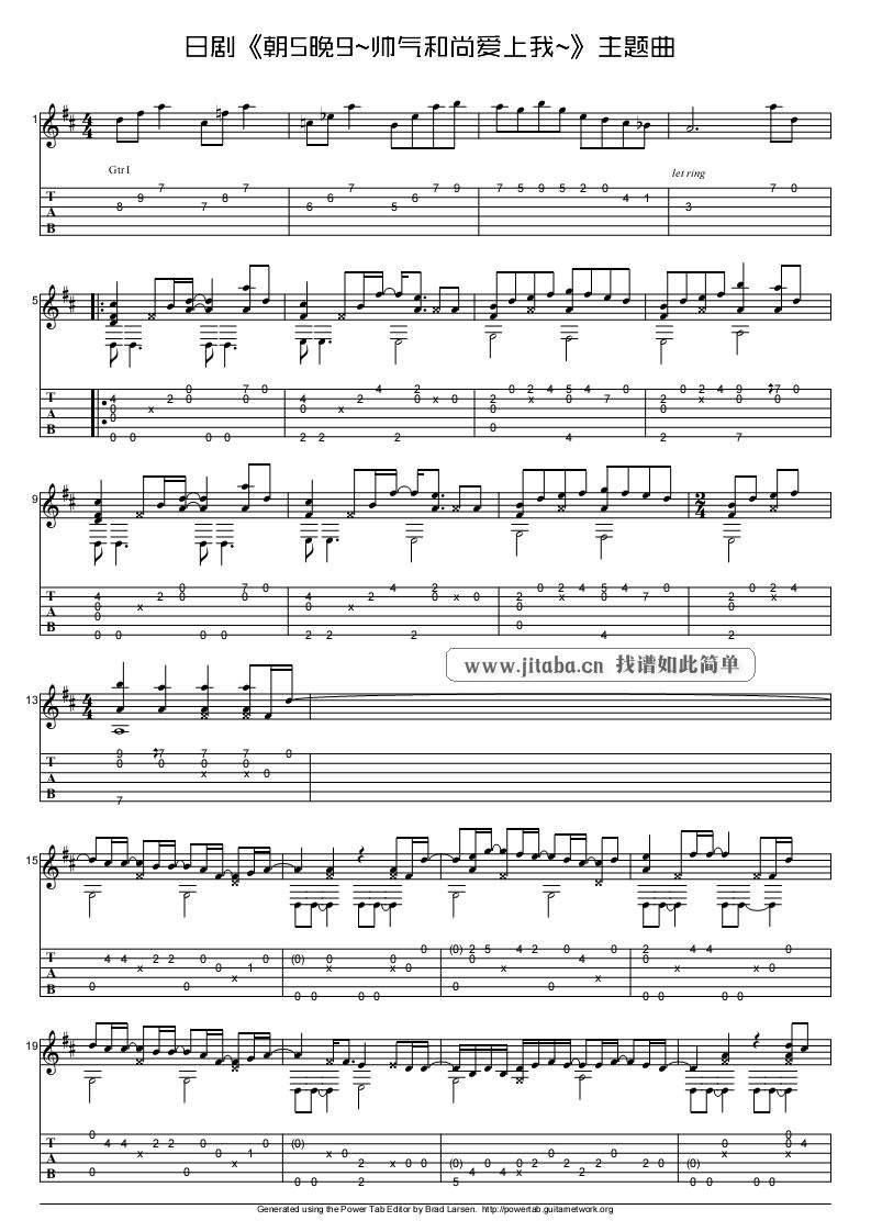 吉他朝五晚九指弹吉他谱_帅气和尚爱上我独奏谱_日剧