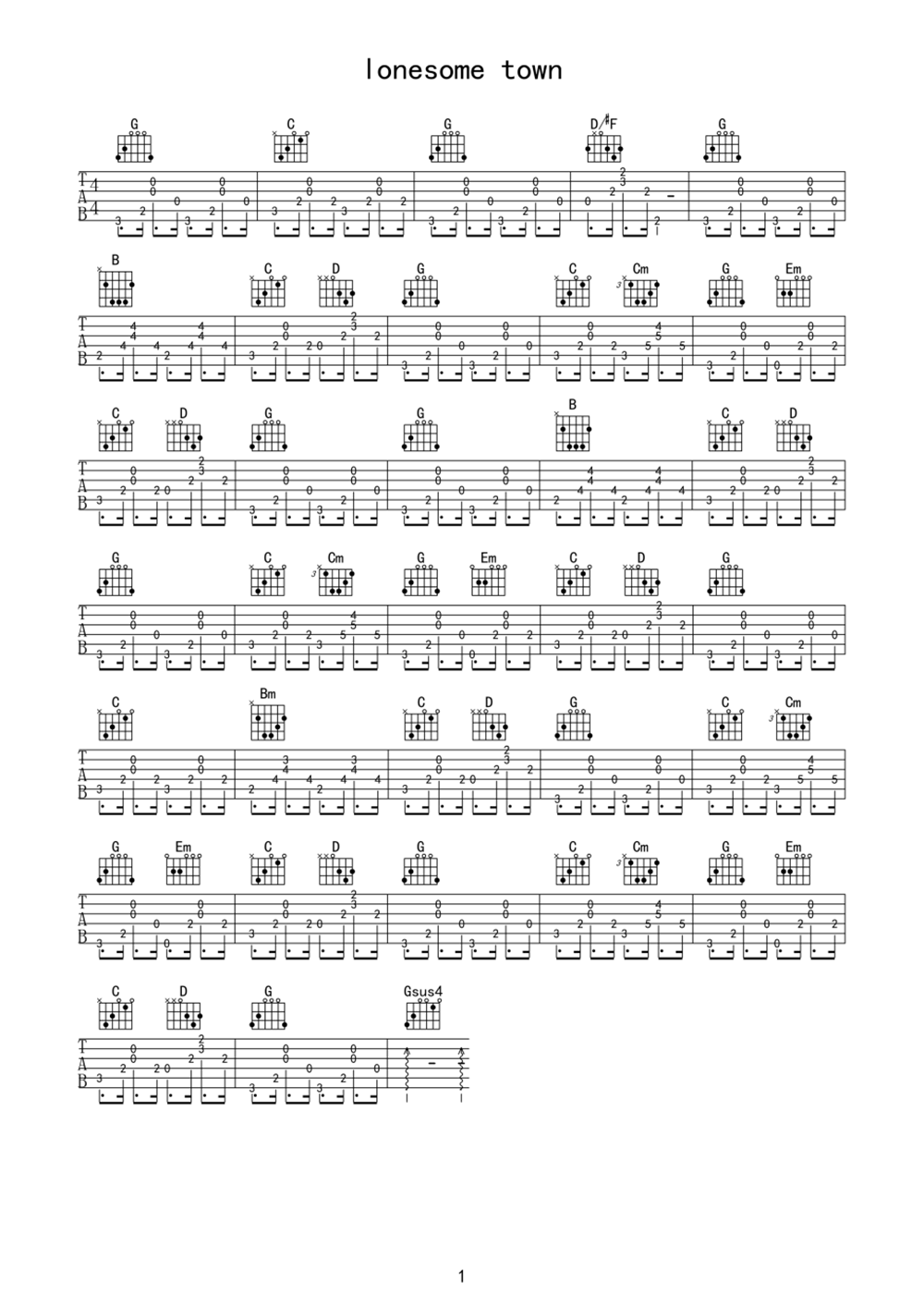 RickyNelson《LonesomeTown》吉他谱,采用C调指法编配,共有1张高清图谱,免翻页排版设计。...