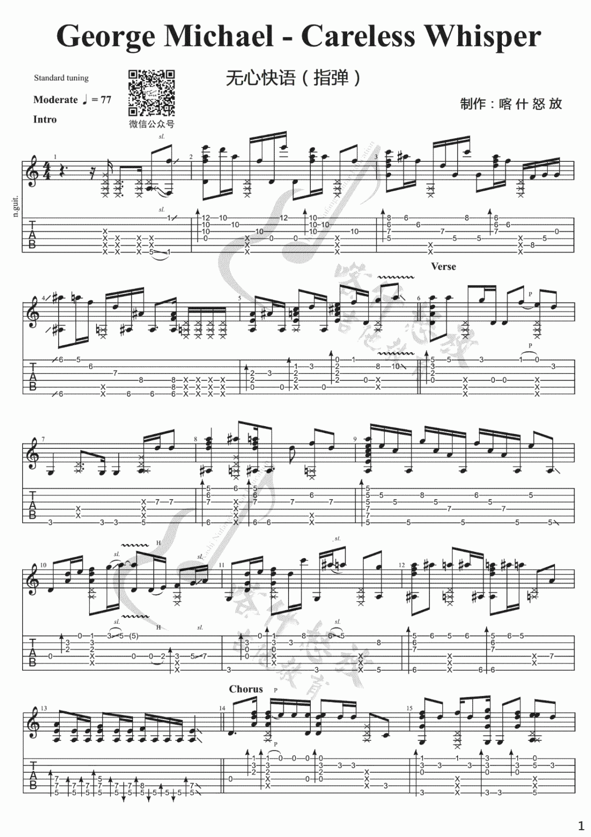 《Carelesswhisper指弹谱》吉他谱,采用C调指法编配,共有2张高清图谱,免翻页排版设计。...