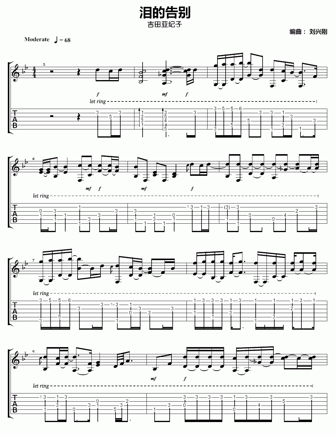 吉他泪的告别吉他谱_指弹吉他谱_吉田亚纪子