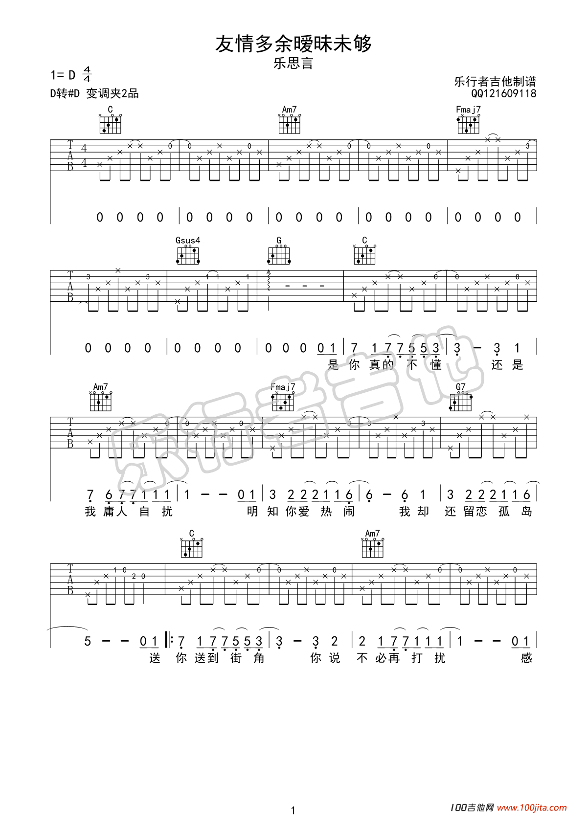 吉他<<友情多余暧昧未够>>吉他谱