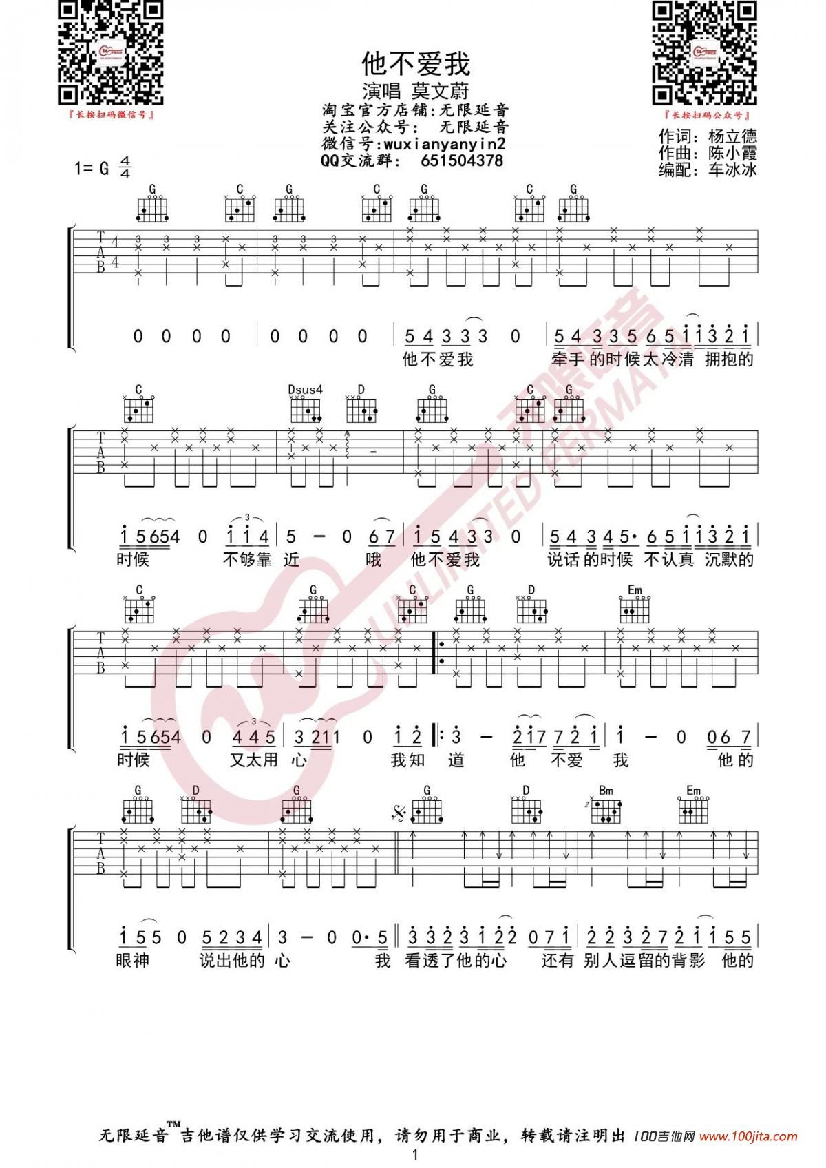 吉他《莫文蔚》 他不爱我