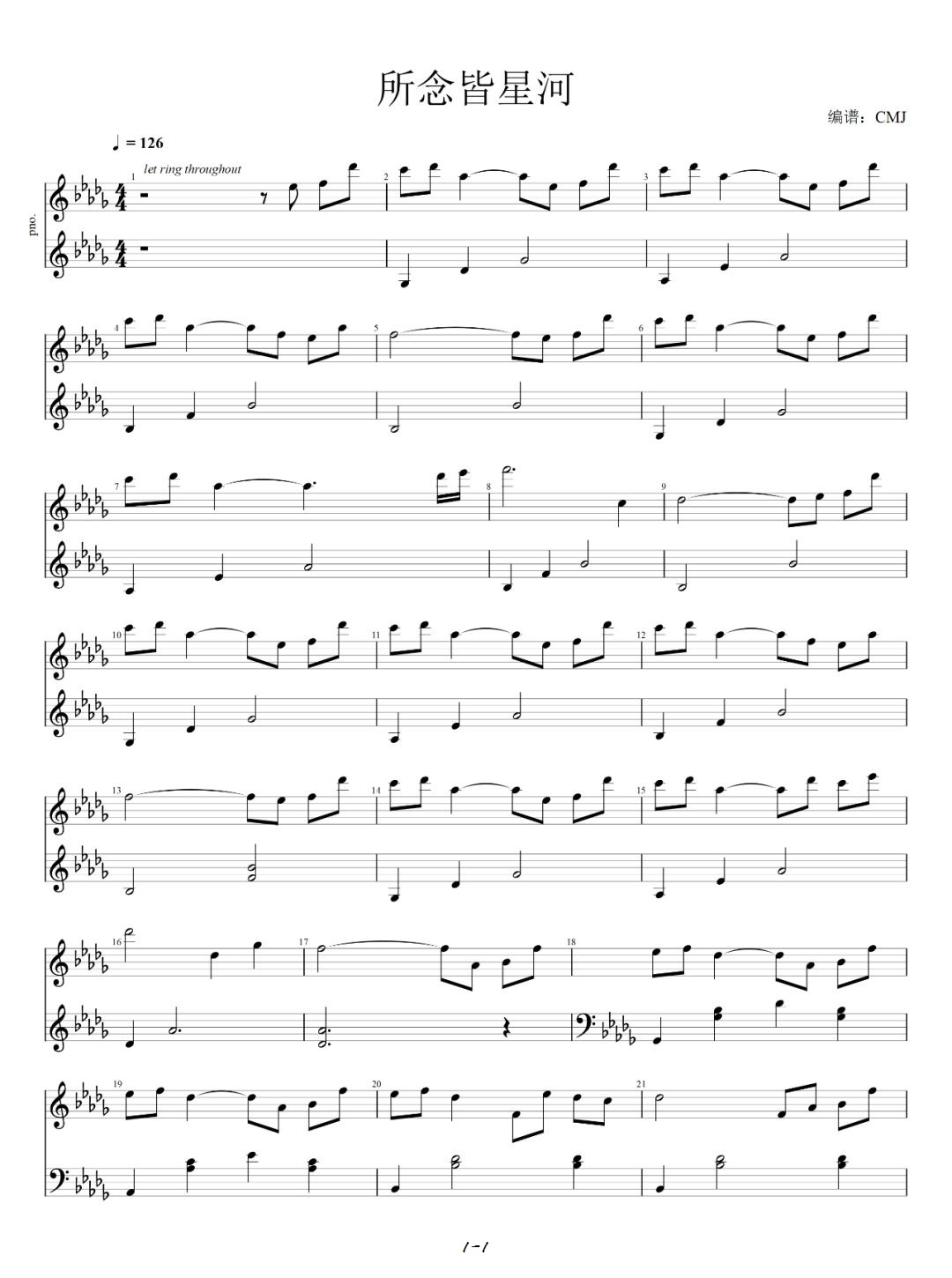 CMJ《所念皆星河》钢琴谱(原版)...