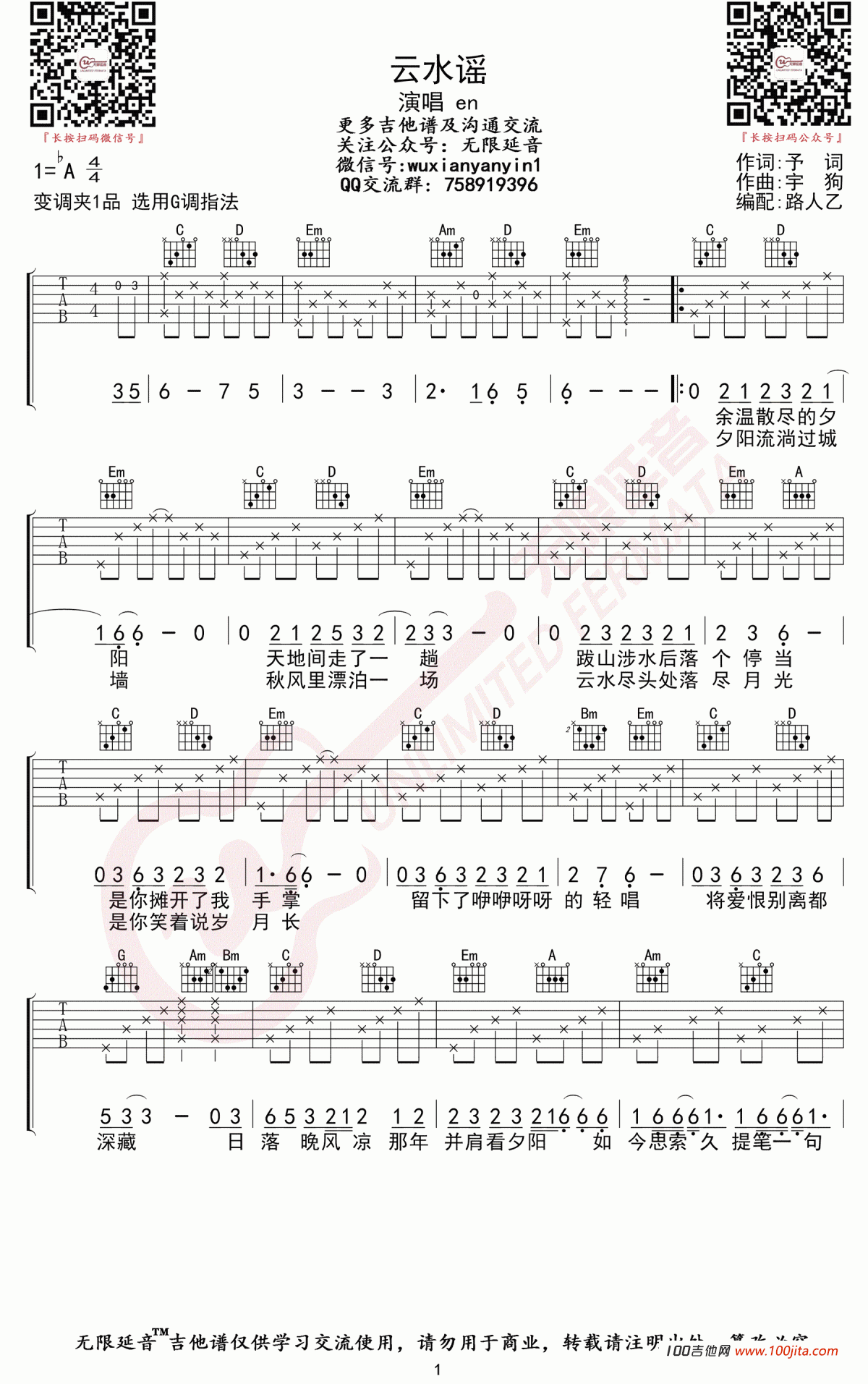 吉他<<云水谣>>吉他谱