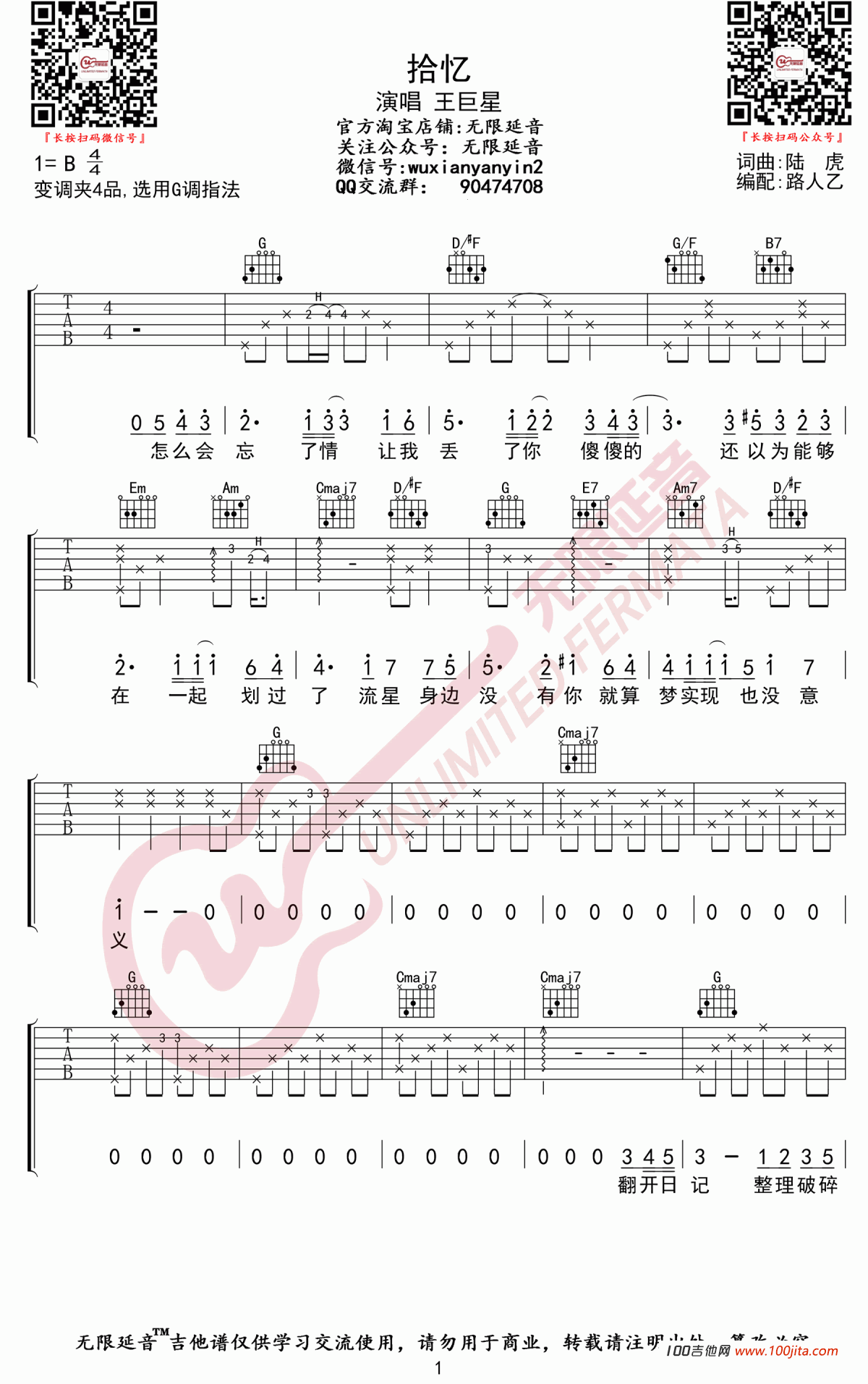 吉他<<拾忆>>吉他谱_王巨星