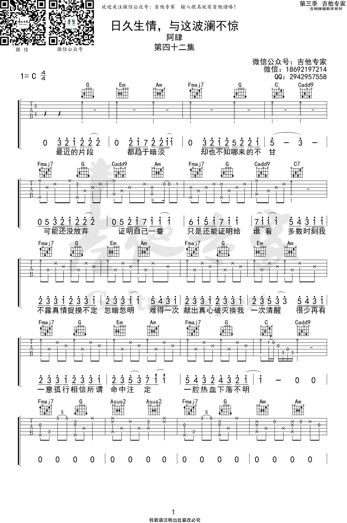 吉他《日久生情,与这波澜不惊》吉他谱.