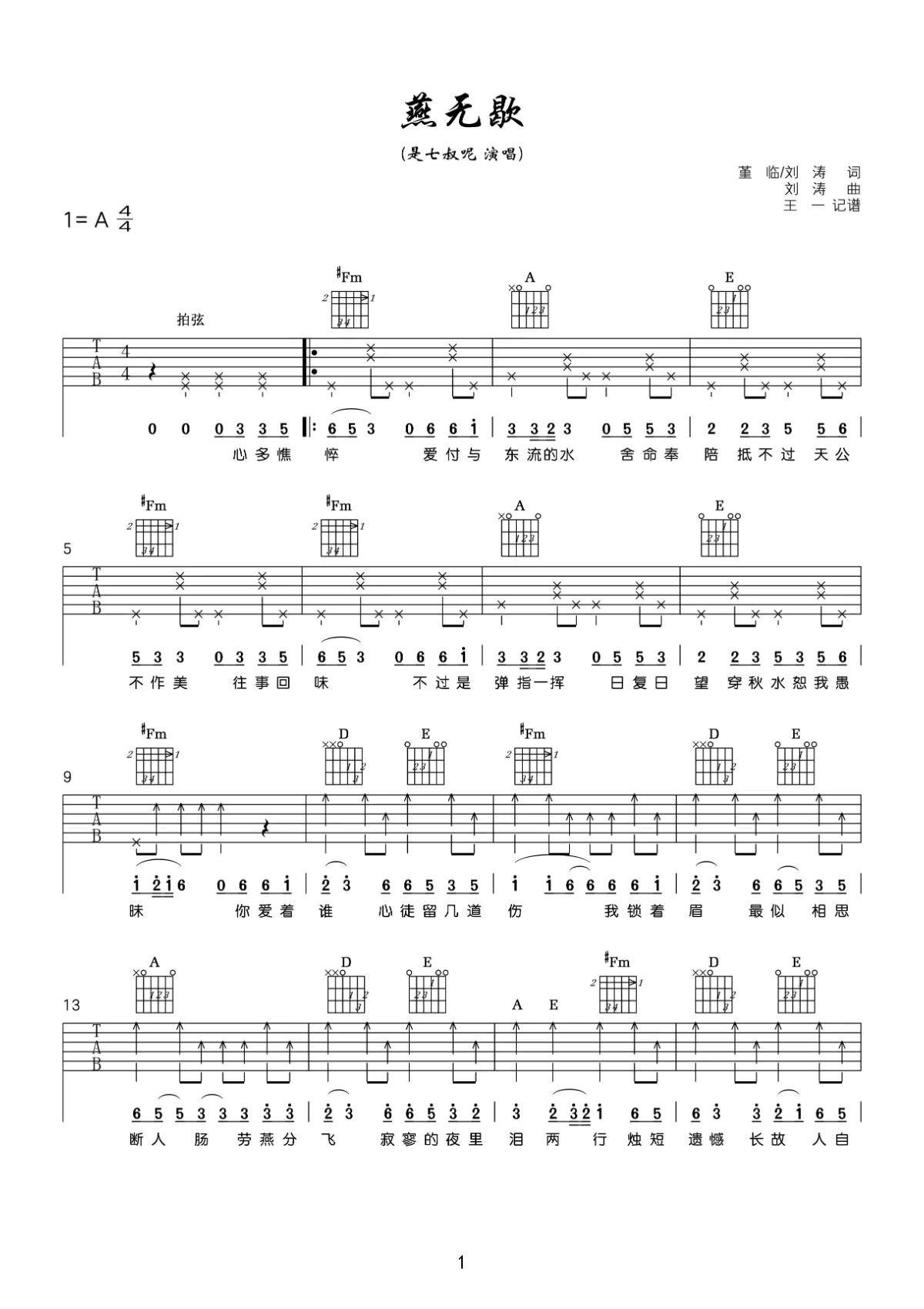 《燕无歇》吉他谱...