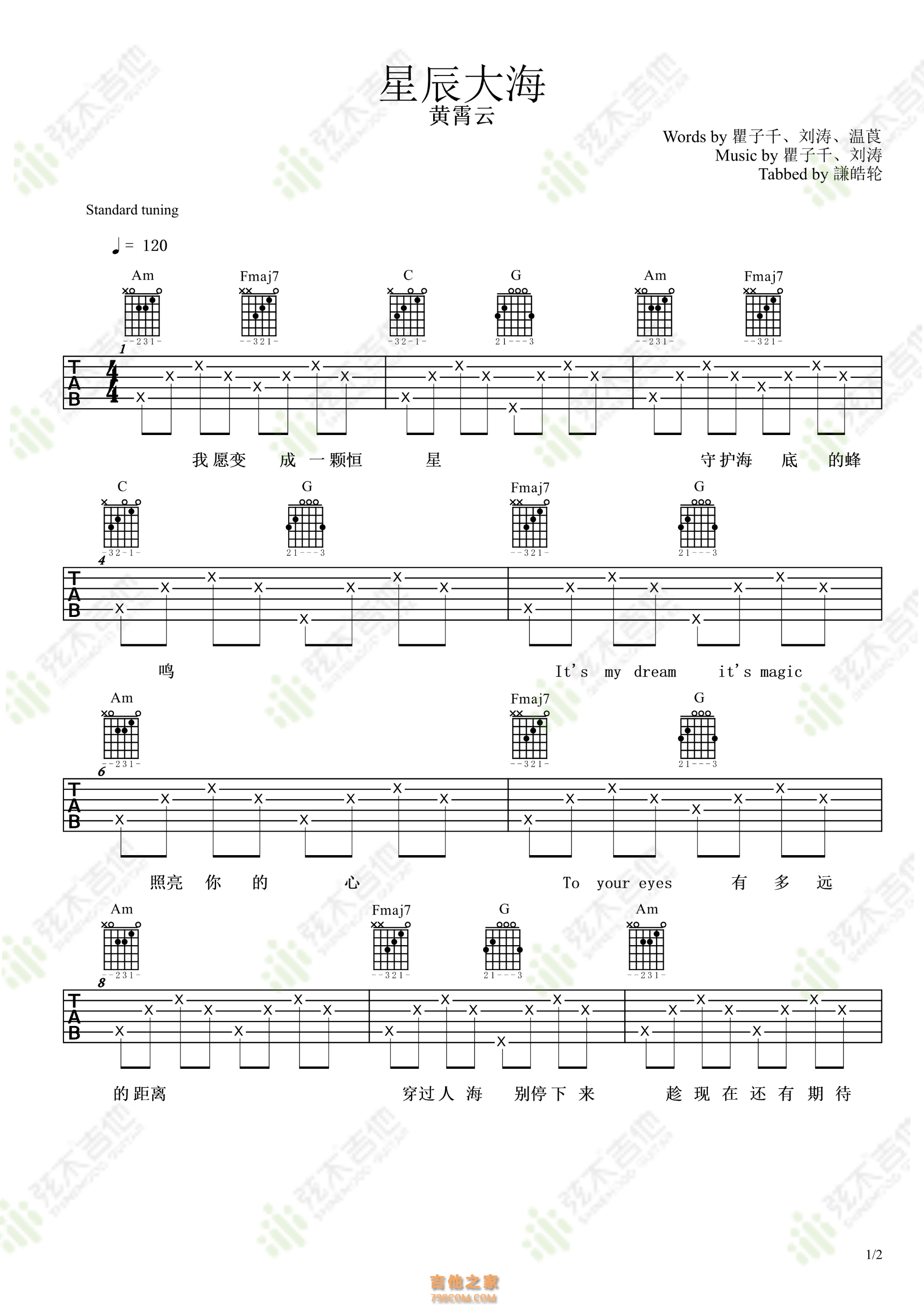 黄霄雲《星辰大海》吉他谱...
