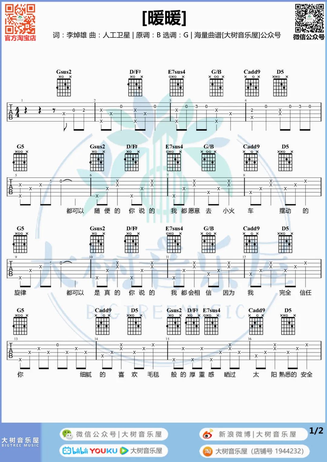 吉他《暖暖》吉他谱_梁静茹_G调原版弹唱六线谱