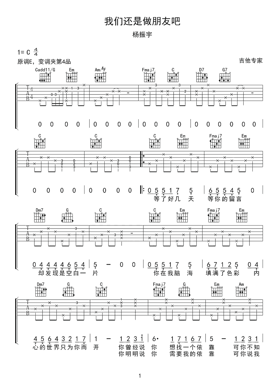 杨振宇《我们还是做朋友吧》吉他谱...