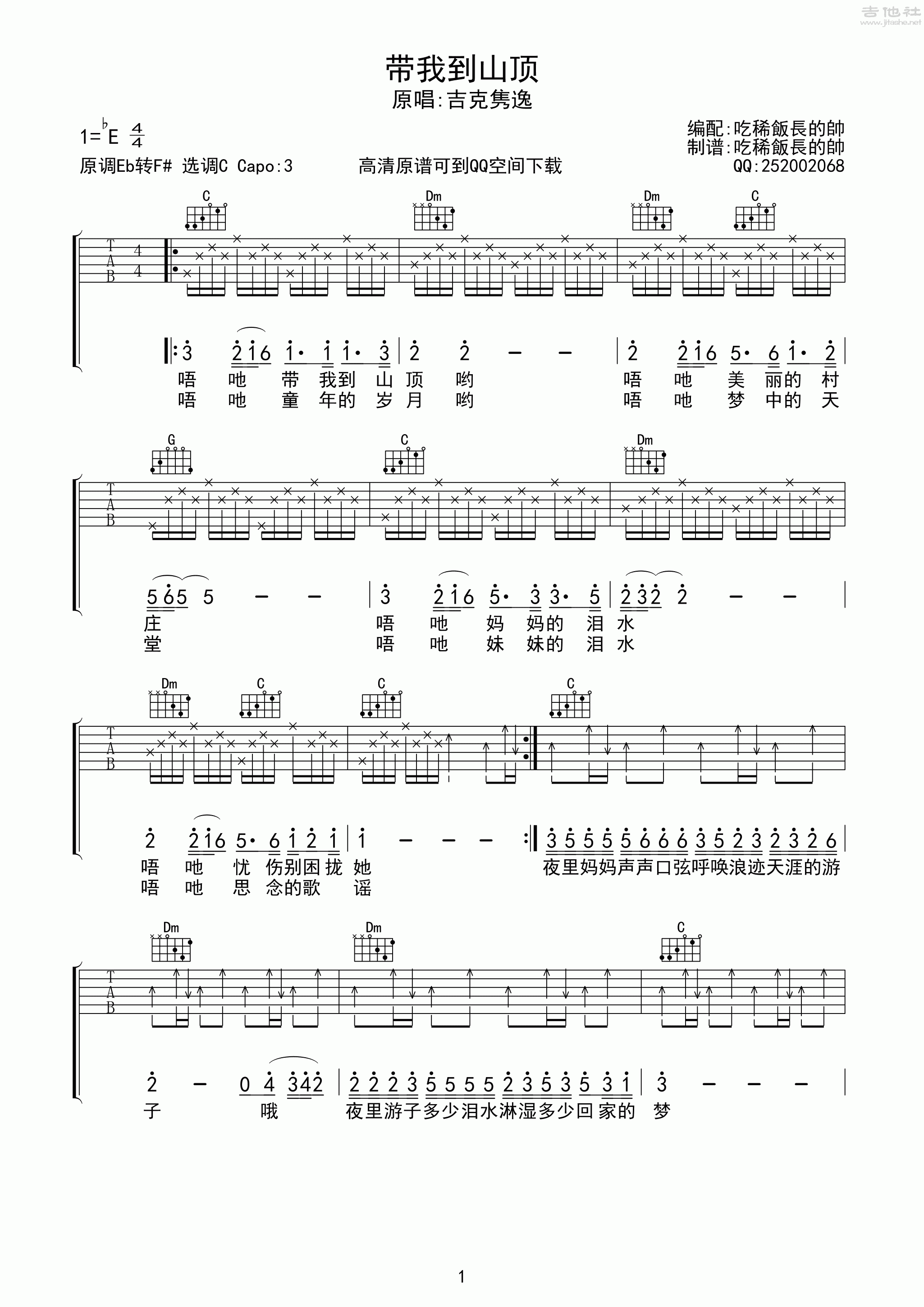 吉克隽逸-带我到山顶[中国好声音弹唱]吉他谱...