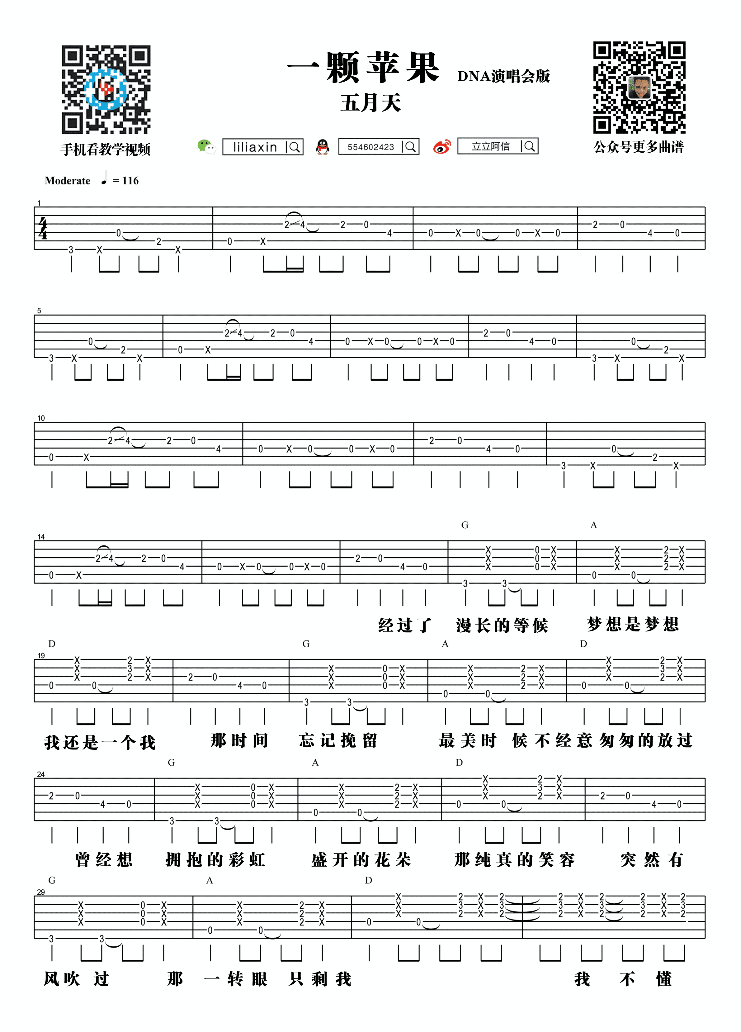 五月天《一颗苹果》吉他教学[弹唱教学]吉他谱...