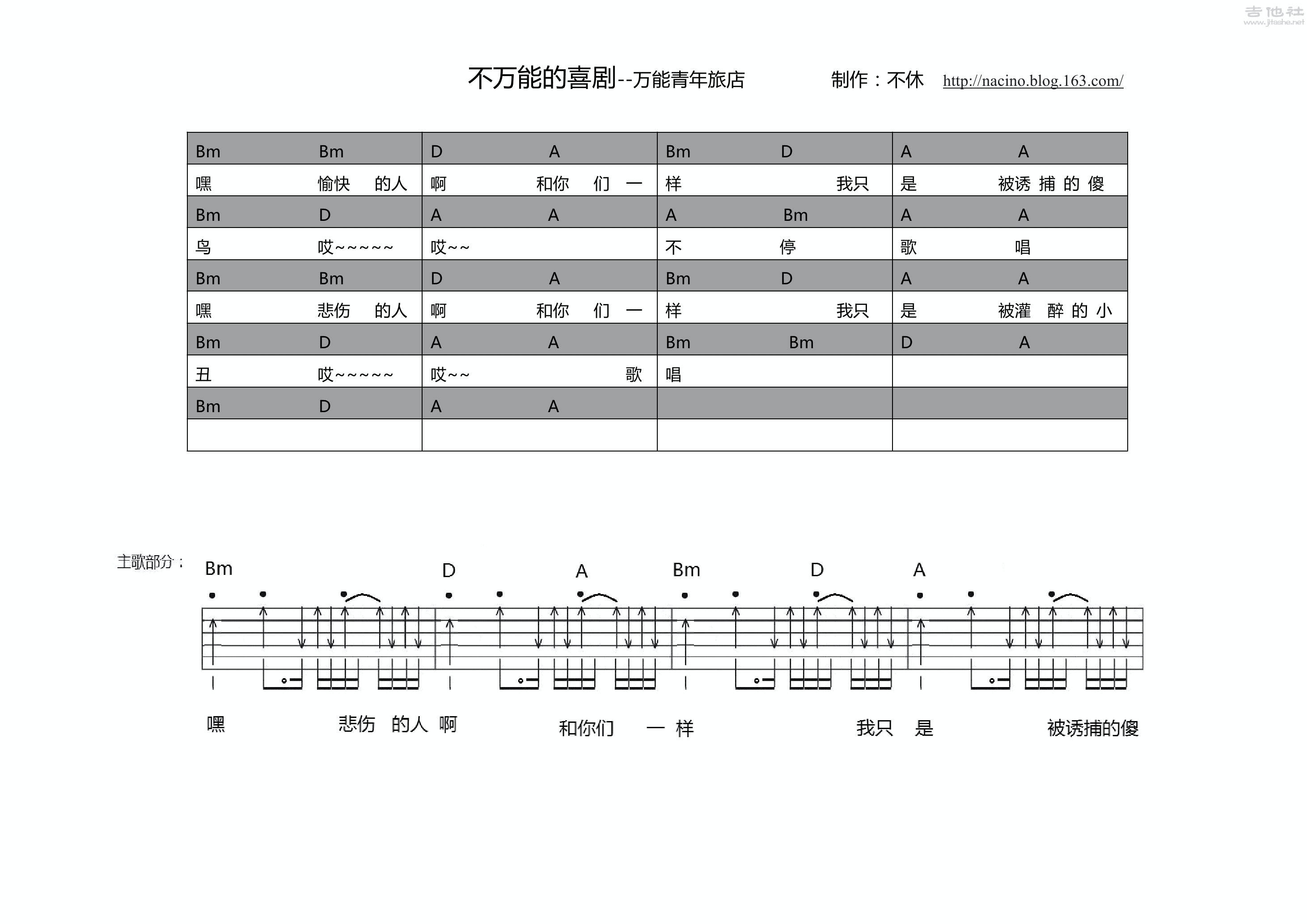 万能青年旅店-不万能的喜剧[弹唱]吉他谱...